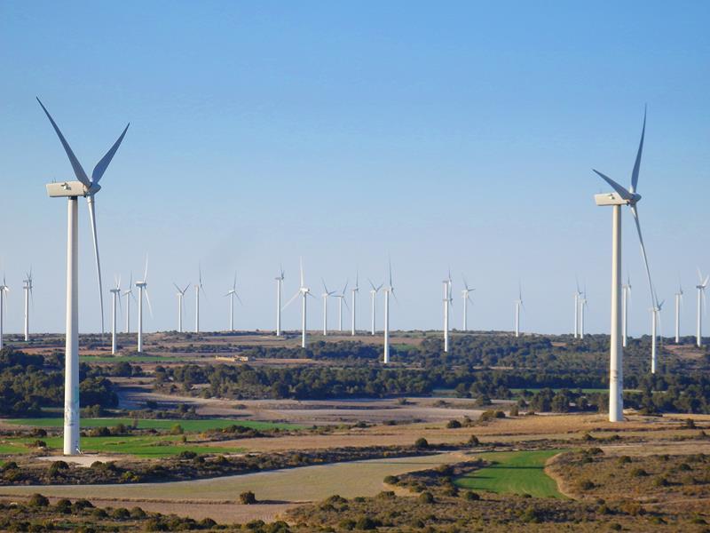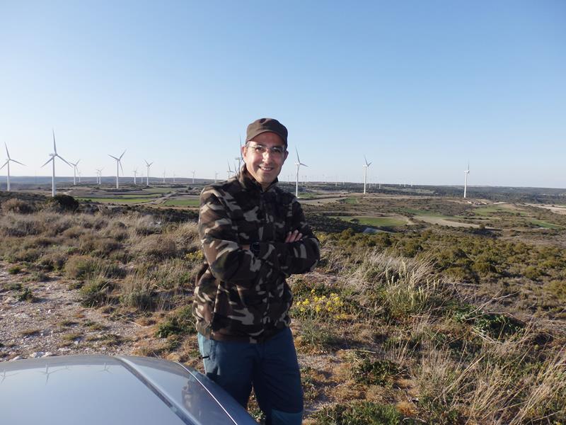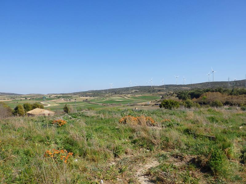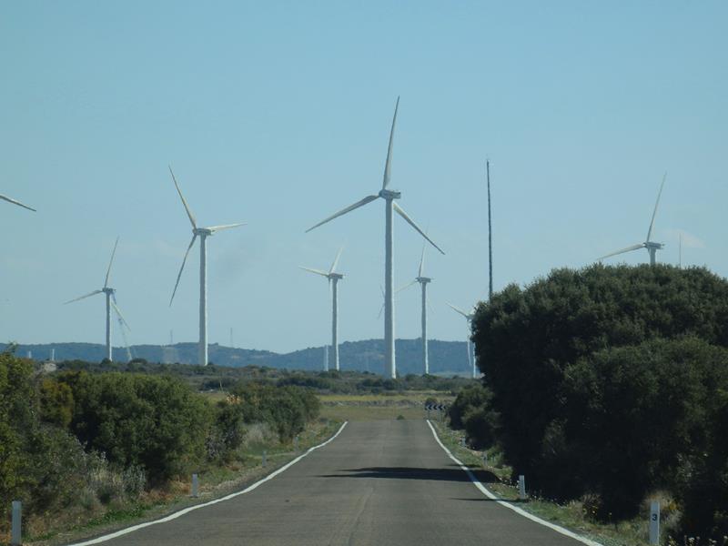 Después de unas cuantas curvas, y sin cruzarme con ningún coche en todo este tiempo, se llega a la planicie superior. He subido rápidamente unos cuantos metros sobre el nivel del mar, lo noto por la presión en los oídos. Al poco, me encuentro de golpe con infinidad de turbinas eólicas, aerogeneradores girando sus enormes aspas sin parar, de un blanco inmaculado, están por todas partes. Pero parece que la carretera se empeña en seguir haciéndome ascender otra vez.