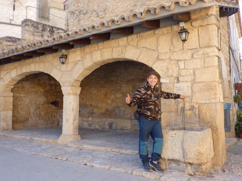 Pues bien, a la salida del pueblo y frente a un pequeño hotel, pintado de un vistoso color mostaza, aparco el coche en una explanada de tierra contigua. Ya caminando, paso al lado de una fuente que bien podría ser la que dió nombre al pueblo, Subo por una de las empinadas calles que van hacia lo que me parece la zona de la iglesia que queda en lo alto. A medida que avanzo me doy cuenta que hay zonas dentro de lo que es el pueblo donde se puede estacionar y que el coche estaría mucho más a mano. Decido volver para cambiarlo de sitio.