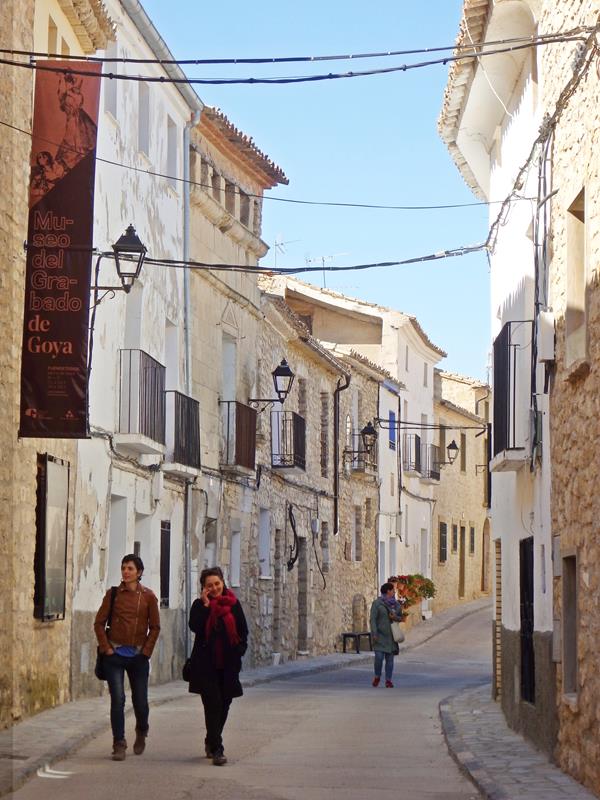 Bajando la cuesta que acabo de subir, y otra vez junto a la fuente, un matrimonio de mediana edad, que por el aspecto y acento me parecen sudamericanos,me preguntan amablemente que si de donde vengo se puede llegar a la casa de Goya. Les digo que sí, y que yo voy a subir en coche pues he visto que se puede aparcar en la zona alta del pueblo.