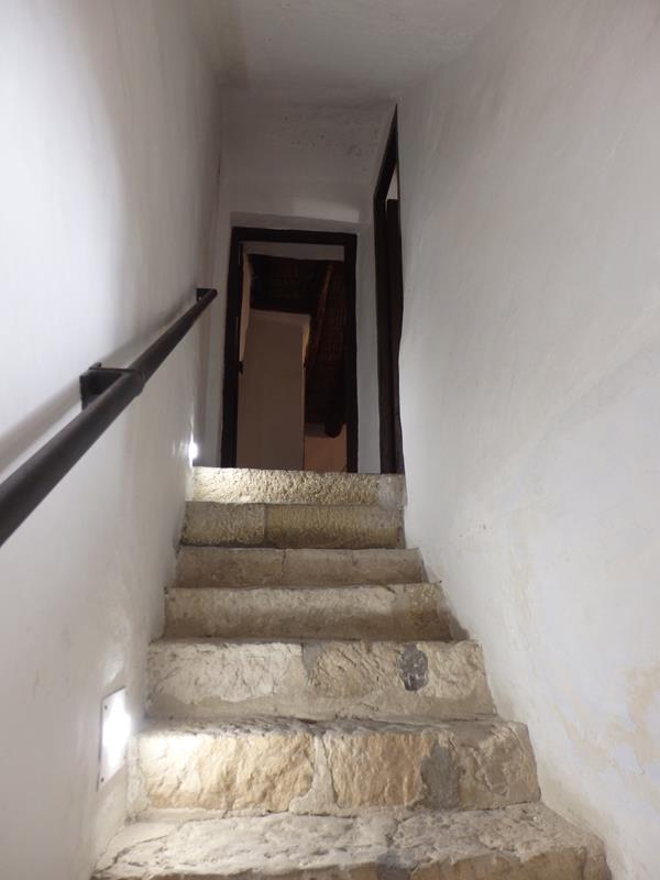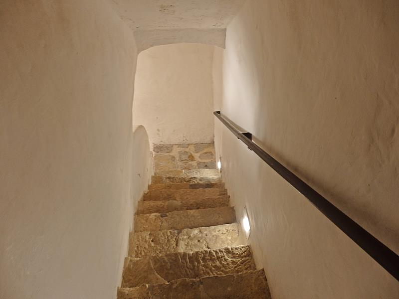Las paredes son blancas, aunque dejan pasar en algunas zonas manchas de humedad. Las formas son más bien redondeadas, los espacios no son muy amplios, pero imagino que suficientes para ser habitados según las costumbres de la época. Subo por unas empinadas escaleras y llego a la zona de los dormitorios. Hago más fotos del lugar. Los espacios siguen siendo bastante reducidos.