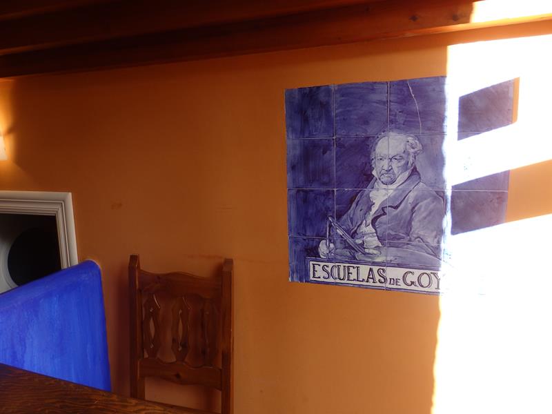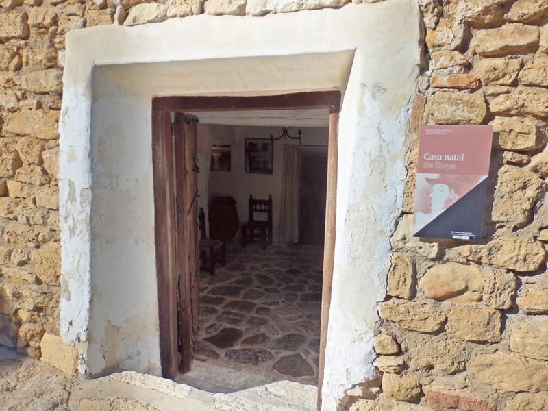 Después salgo del edificio y voy hacia la casa de Goya. Han abierto. No hay nadie. Estupendo. La casa en sí parece bastante humilde. La fachada es muy simple. Más simple no podría ser. Te imaginas algo más impresionante, pues allí vivió el gran pintor aragonés, aunque fuera de pequeño, pero hay que ponerse en el tiempo y el lugar, que es el siglo XVIII, y en el Aragón rural.