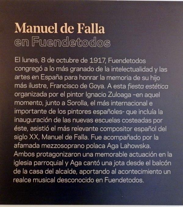 Hay una lámina además con un retrato que hizo Zuloaga a Falla. Resulta muy familiar para los que los conocieron, entre los que me encuentro. También hay una foto de un busto de Goya en bronce, que colocaron junto a la iglesia en 1.920.