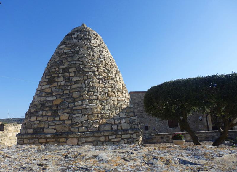 Entonces giro hacia la derecha, y bajando por una calle diviso una nevera, construcción cónica en piedra típica de esta zona. Y luego otra. Hay casas que dentro de sus propiedades disponen de ellas, aunque ahora lógicamente como algo puramente decorativo.