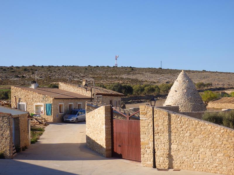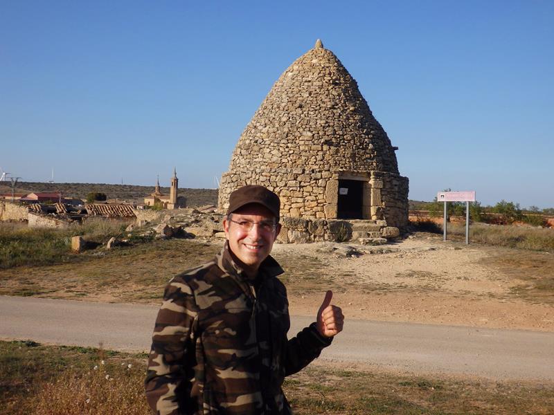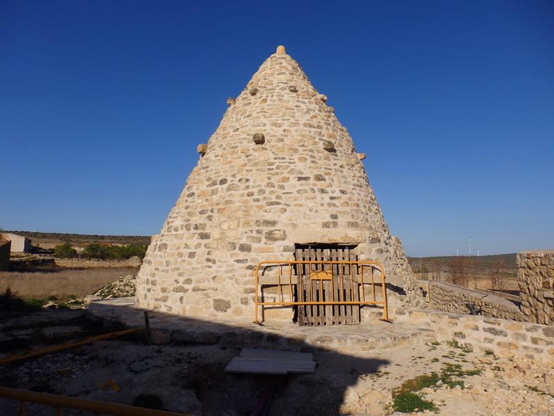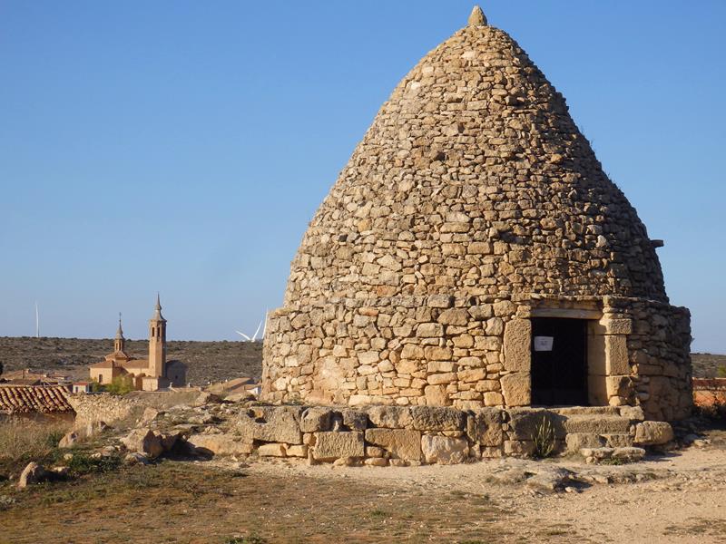 Entro por un camino sin asfaltar y enseguida me topo con la nevera más famosa de la localidad porque de los originales, es el mejor conservado. Un nevero artificial es un pozo excavado en la tierra con muros de contención, de pequeñas o grandes dimensiones e incluso con techo, como es el caso del de Fuendetodos, donde se almacenaba la nieve que caía en invierno, para más tarde consumir el hielo en verano.