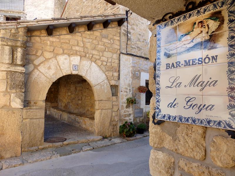 Pues bien, como todavía no han abierto la casa de Goya, aprovecho para echar un vistazo tranquilo a la zona. Lo primero que me llama la atención es un par de arcos de piedra, que sustentan un tejadillo y que forman un espacio diáfano, junto a una fuente. Enfrente veo un mesón que se llama «La Maja de Goya» y a su lado, la casa natal de Goya. A continuación, una sala de exposiciones dedicada a Ignacio Zuloaga. En la parte superior de la plaza hay un gran busto de Francisco de Goya.