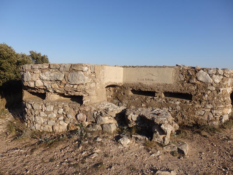 Estos puestos son de forma rectangular y tienen aspilleras para unos veinte fusileros y un nido de ametralladora en la esquina orientada al enemigo; en el centro tienen un almacén y zona de descanso, es el espacio que vi y que pensé sería para dormir.También hay un puesto artillero fortificado y dotado de líneas de trinchera para su defensa perimetral. Según figura inscrito en ellos, fueron construidos en 1937 por la compañía de zapadores de Zaragoza «Los Barbis».