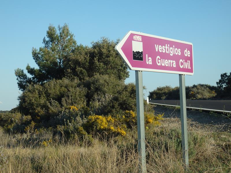 Hola a todos otra vez. Hoy es 30 de marzo, sábado, el día va cayendo y ya vengo de ver la Cartuja del Aula Dei y la casa natal de Goya. Pero ahora que ya voy de vuelta a Zaragoza, no lo voy a hacer sin antes parar, como antes os decía, a ver qué es ese lugar que anuncia una señal en un lateral de la carretera que dice “vestigios de la guerra civil” y que he visto unas horas antes al pasar con el coche hacia Fuendetodos.
