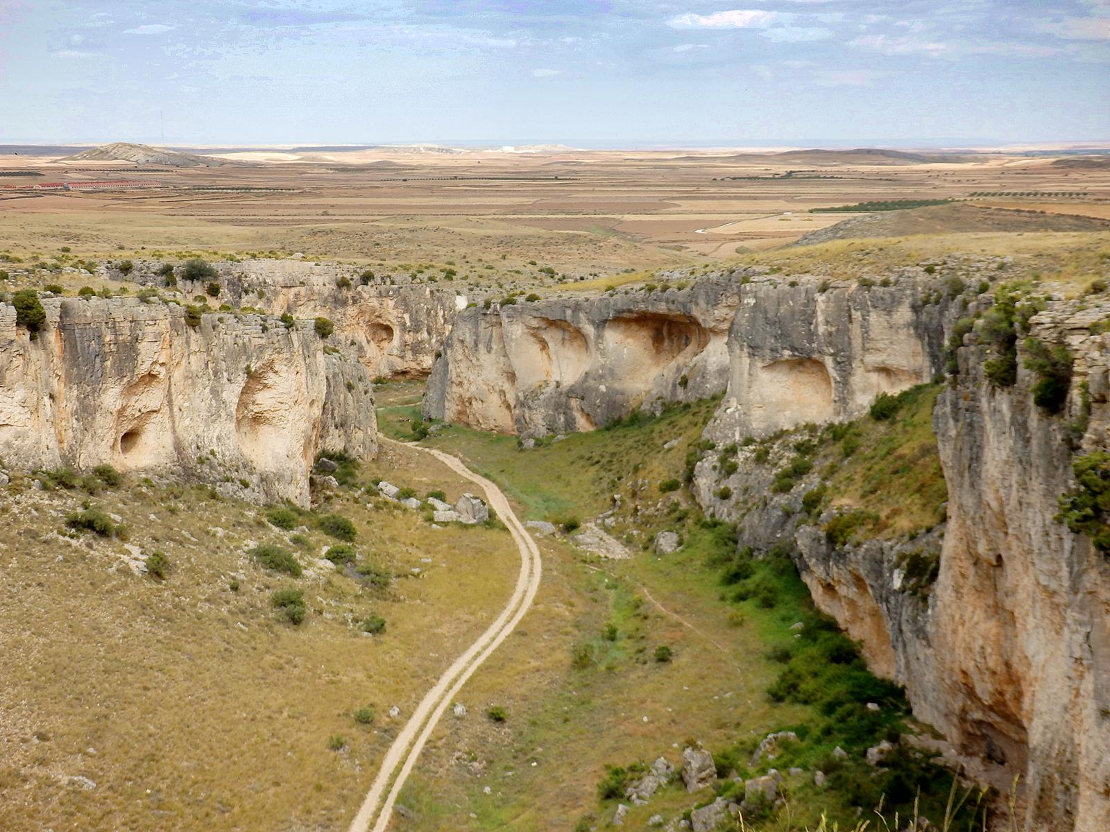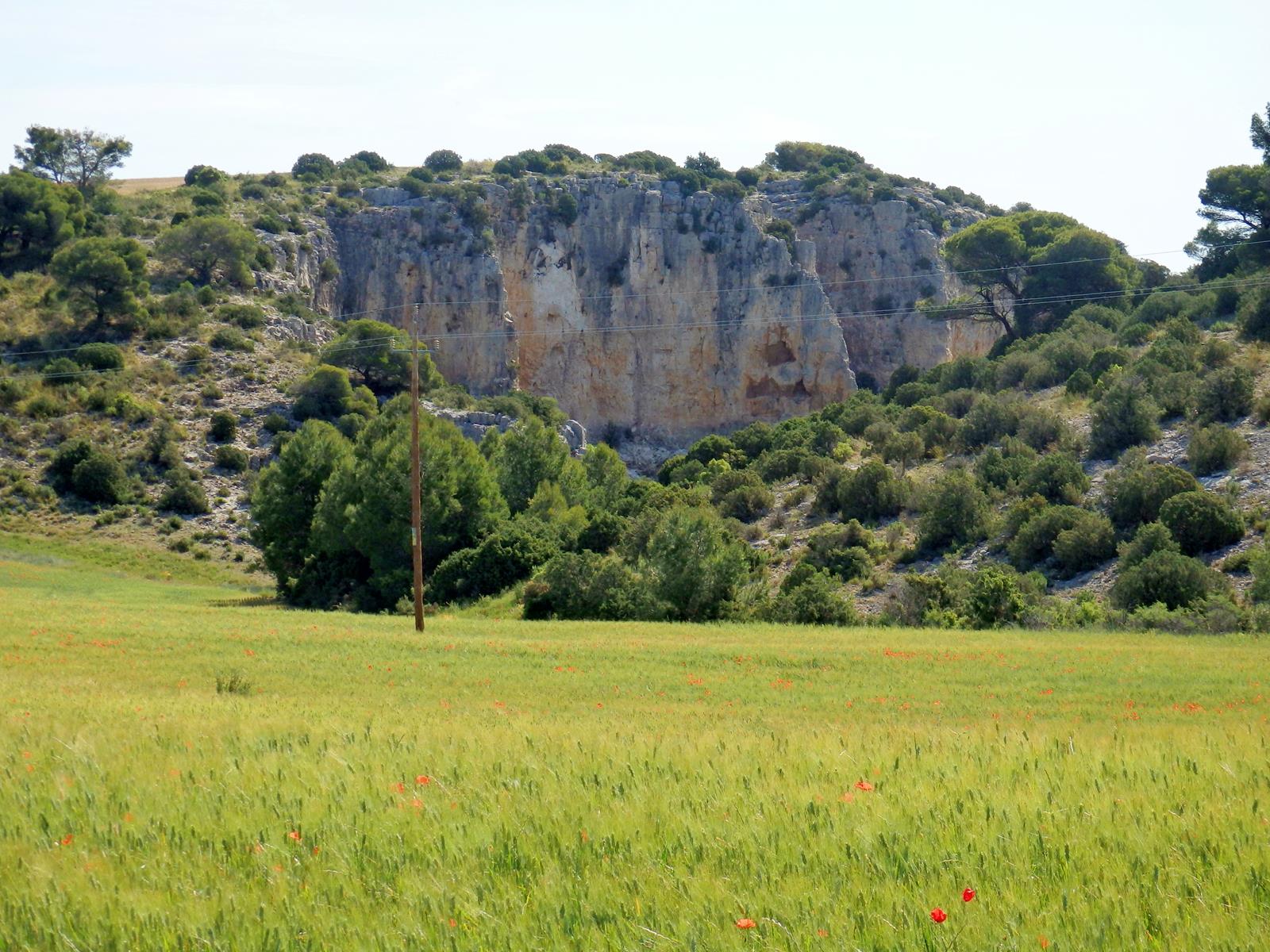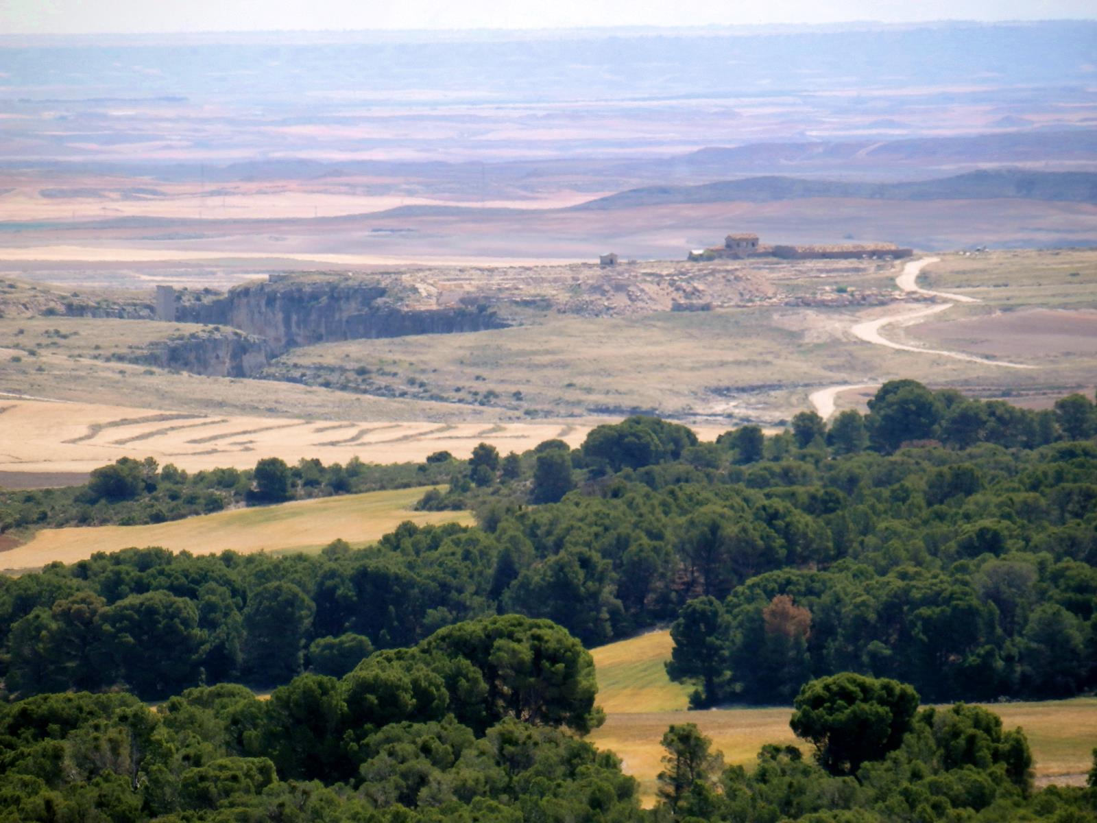 Vamos avanzando y el horizonte está lleno de contrastes. En torno a nosotros, los árboles, la mayoría pinares y alguna encina, pero a lo lejos se ve la zona esteparia y los campos de cereal. Y también se adivina en la lejanía otra cicatriz en la tierra. Es la Foz de Zafrané, a la que iremos después, y a su izquierda, más lejos todavía, la localidad de la Puebla de Albortón.