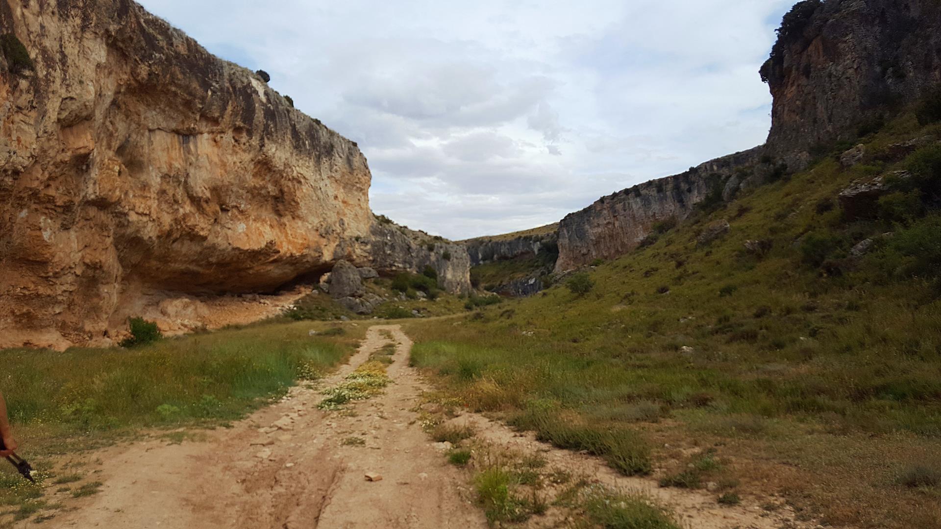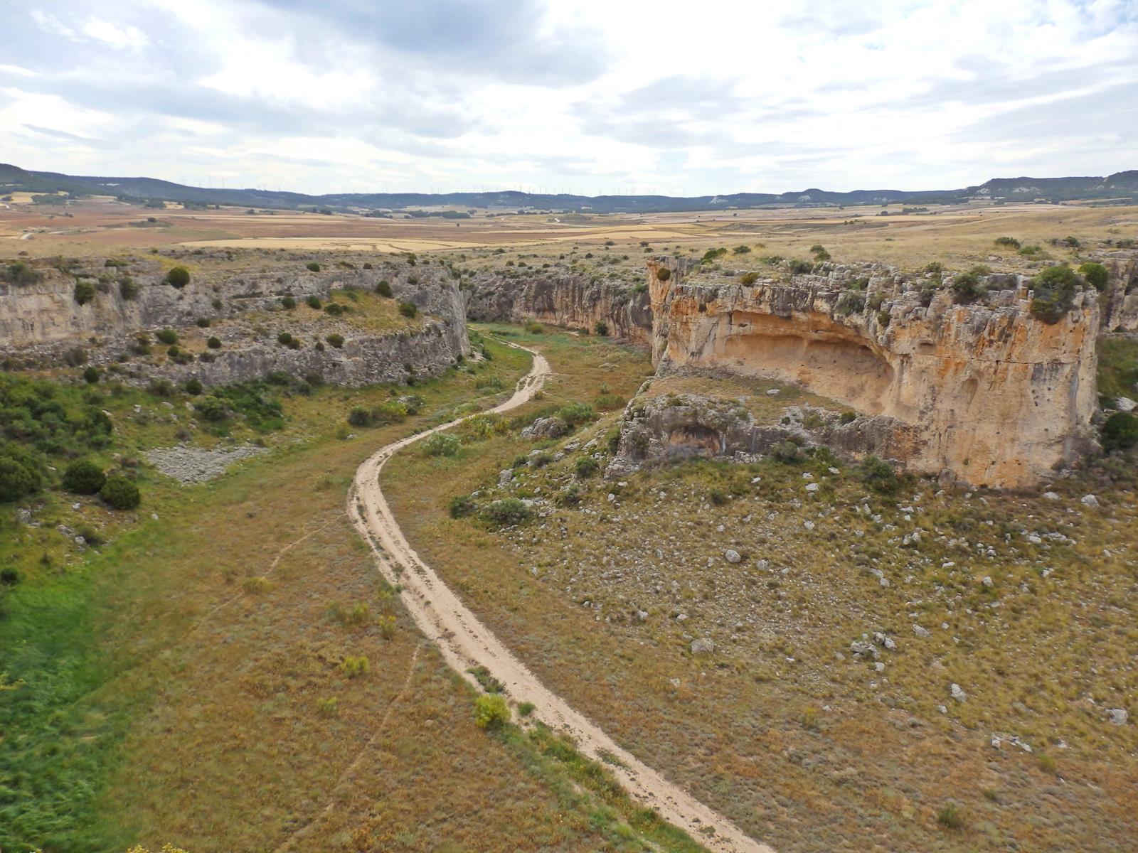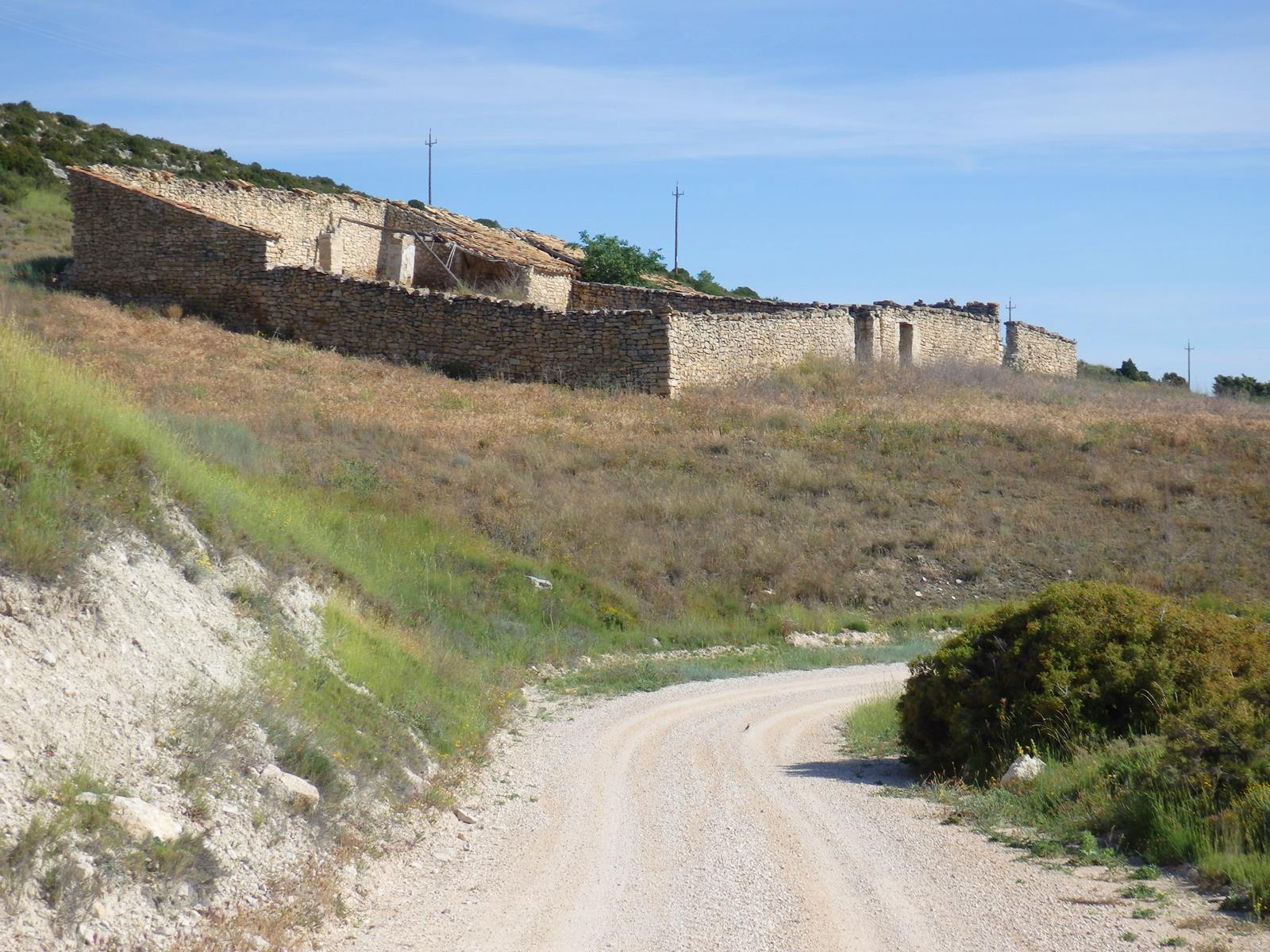 Al salir del camino que abandona la foz y ya en la pista, dejamos a un lado, a nuestra izquierda, una construcción rural que parece una especie de paridera o corral. Lo que nos espera es unos cuantos kilómetros, que después de lo visto, se nos van a hacer un tanto monótonos. El firme es de color blanquecino.