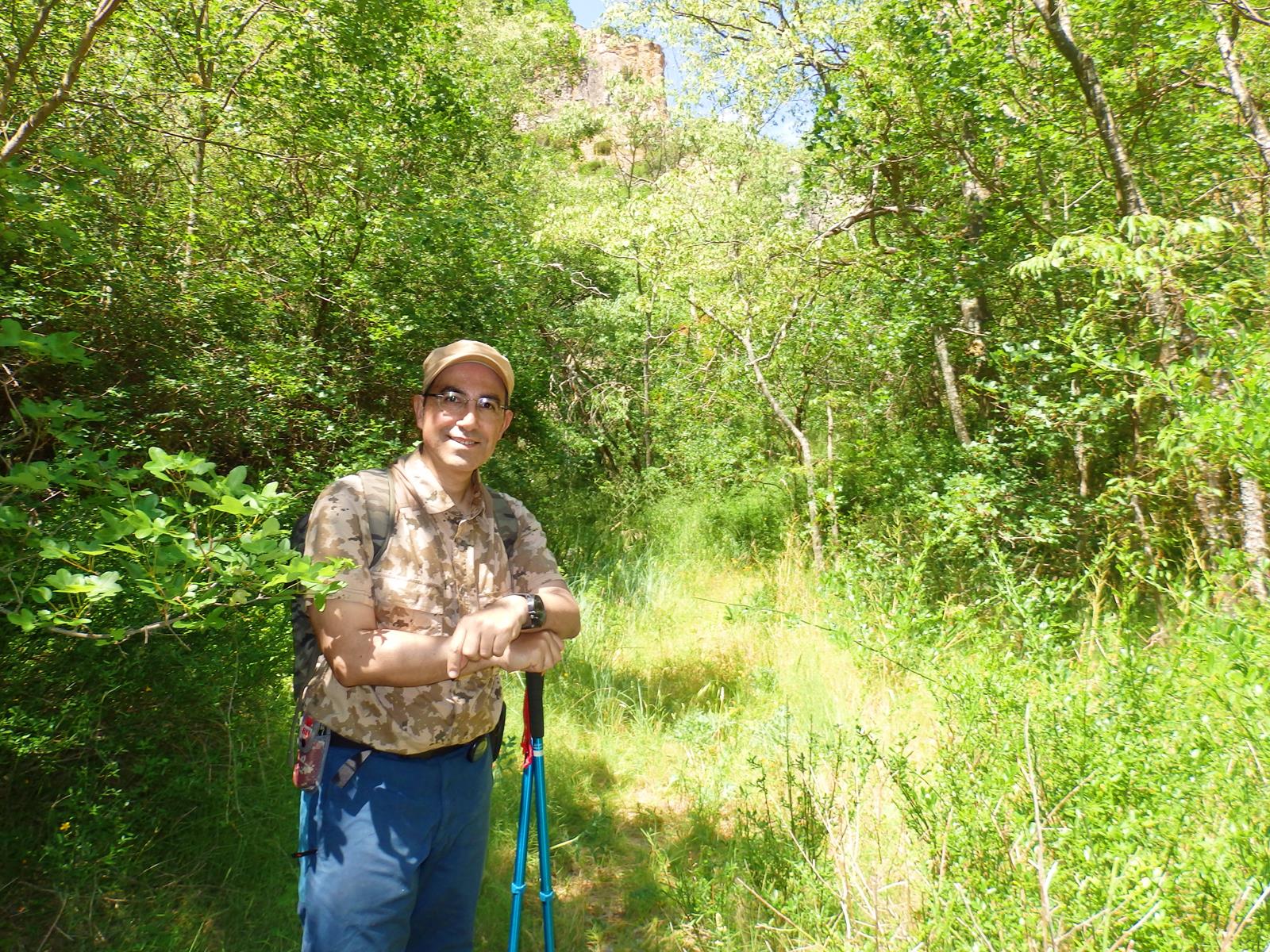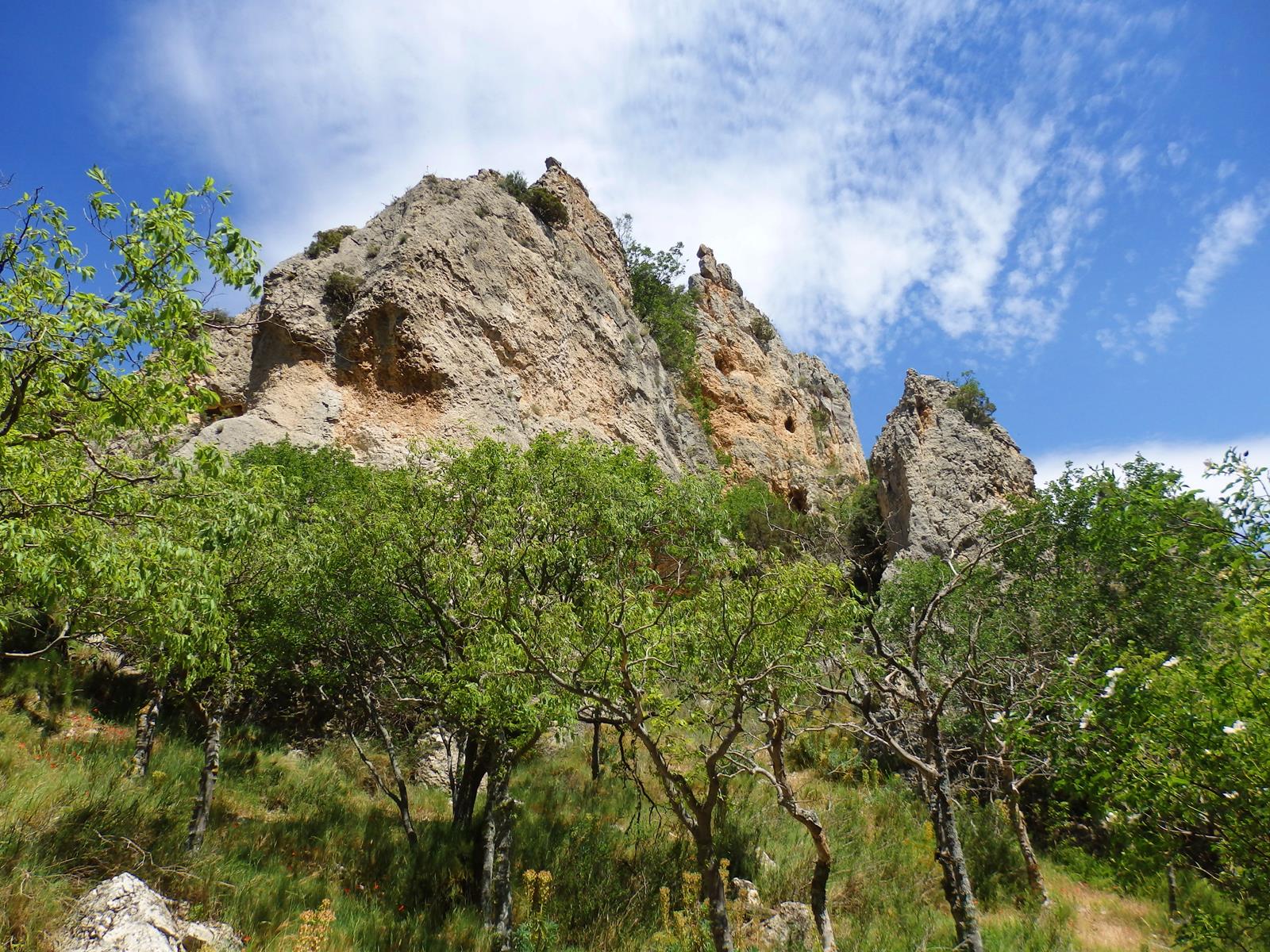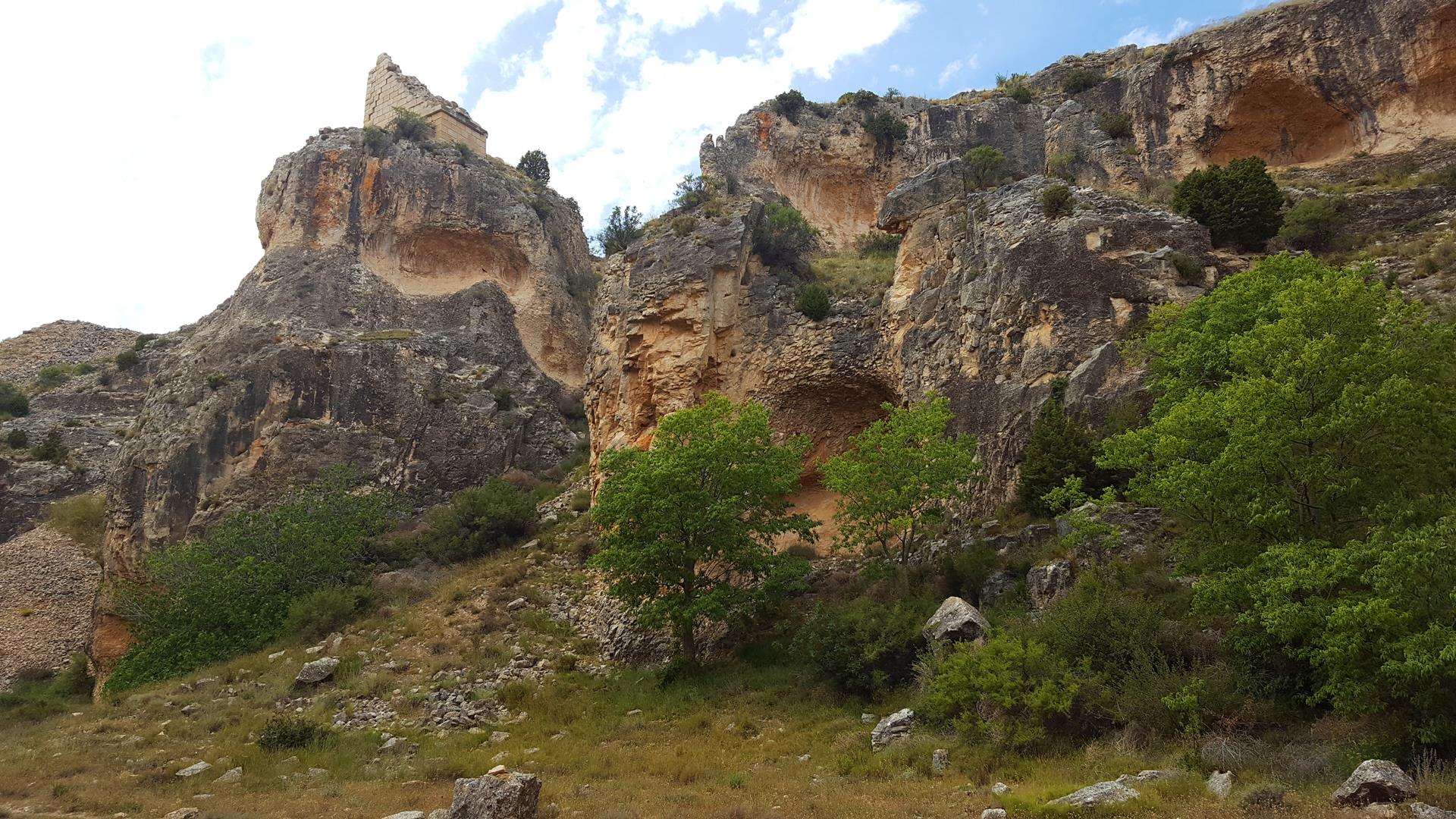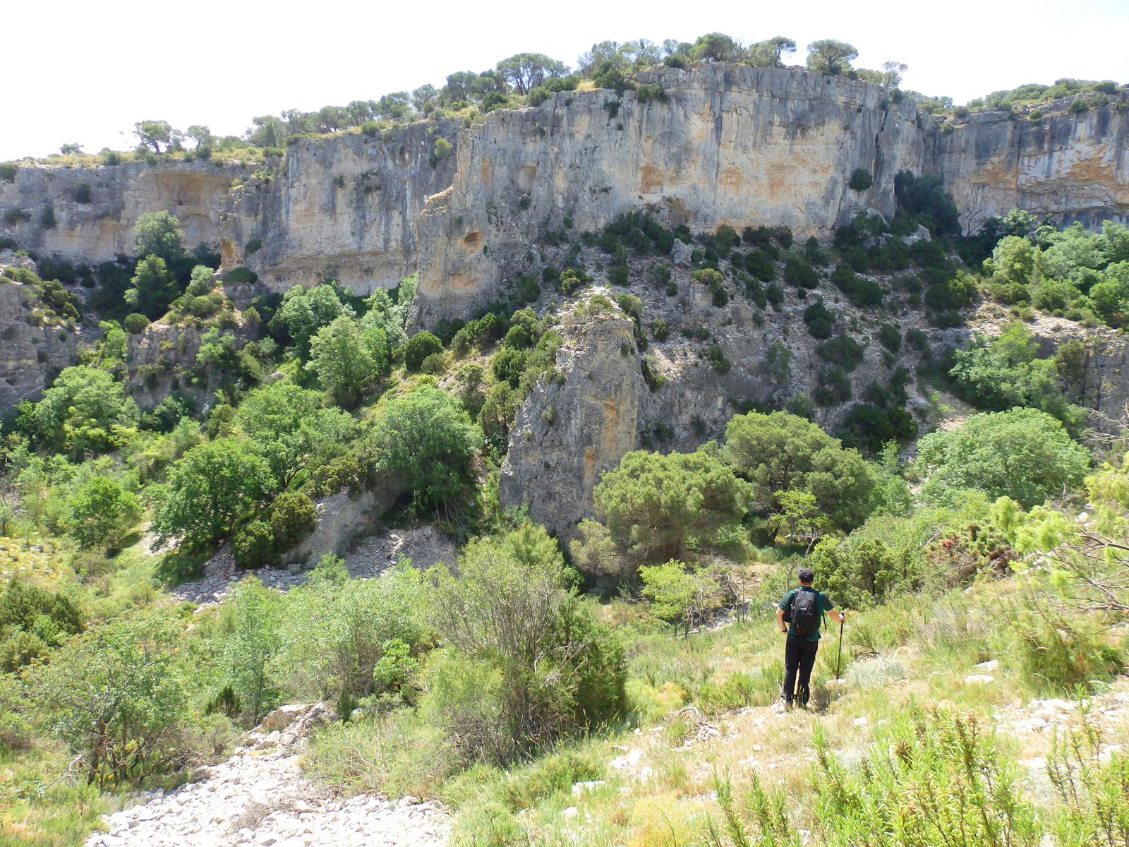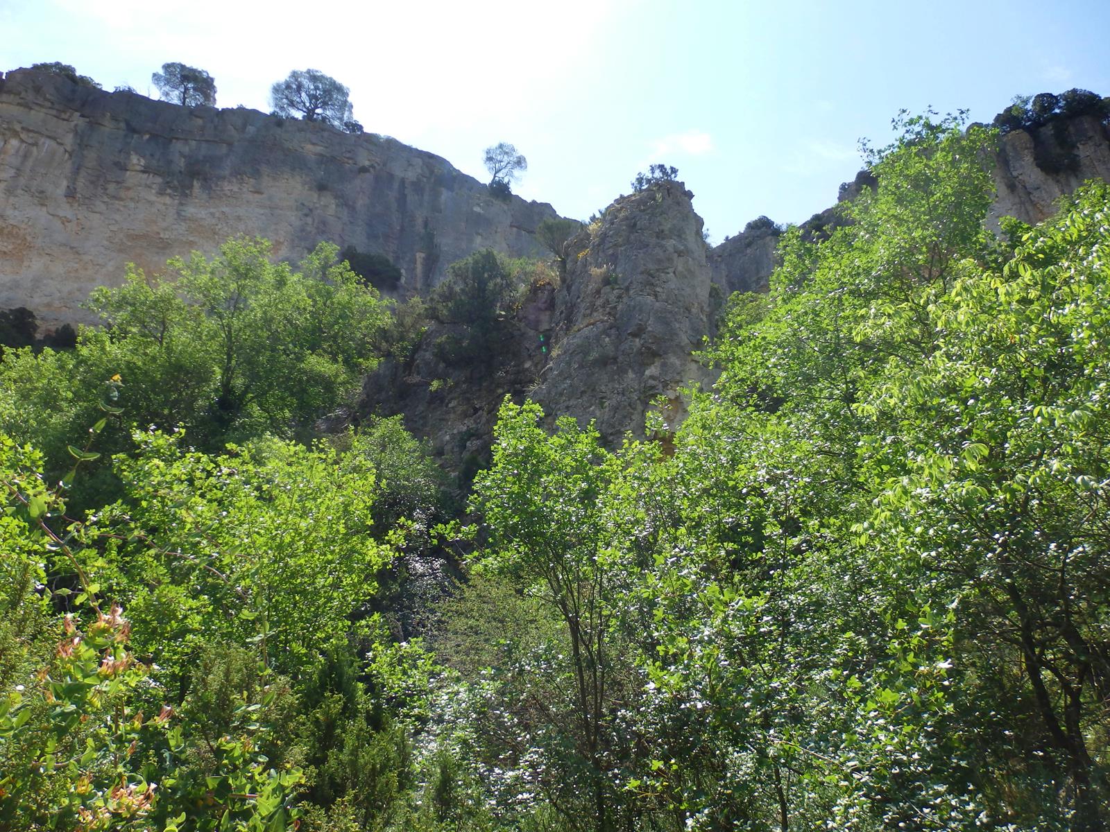 Pero cuando nos damos la vuelta, le propongo a Ángel que dejemos de hablar por unos instantes. Quiero experimentar la sensación que es estar en ese lugar. Nos quedamos en absoluto silencio. Se escuchan únicamente los cantos de los pájaros y el aire que agita las plantas, pero nada más. Es una increíble sensación de paz y tranquilidad .Dan ganas de permanecer allí un buen rato a disfrutar del entorno. Pero finalmente dejamos de estar inmersos en las sensaciones que nos rodean y seguimos la marcha. No podemos entretenernos demasiado. Queda mucha excursión todavía por hacer y el tiempo lo tenemos tasado si queremos llegar a la Hoz de Zafrané y volver a Fuendetodos. Hay que seguir.