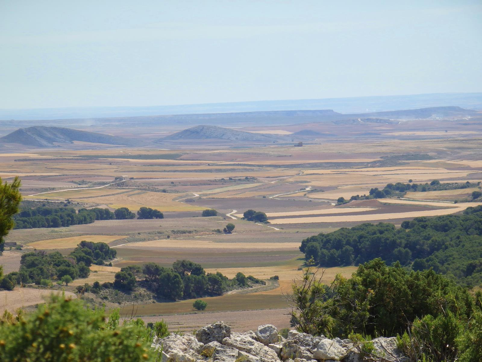 Vamos avanzando. La visión es diferente. El camino por el que hemos pasado antes ahora se ve pequeño abajo. En la lejanía incluso se aprecia la localidad de la Puebla de Albortón.