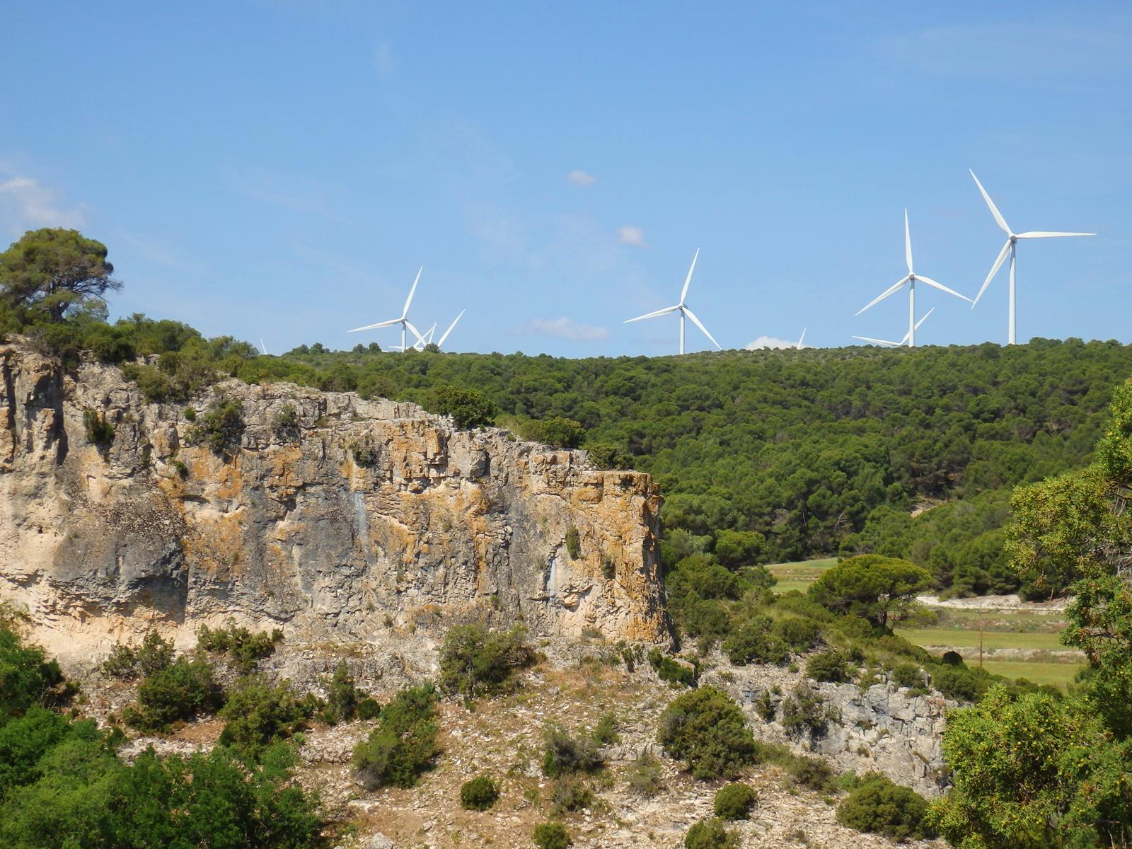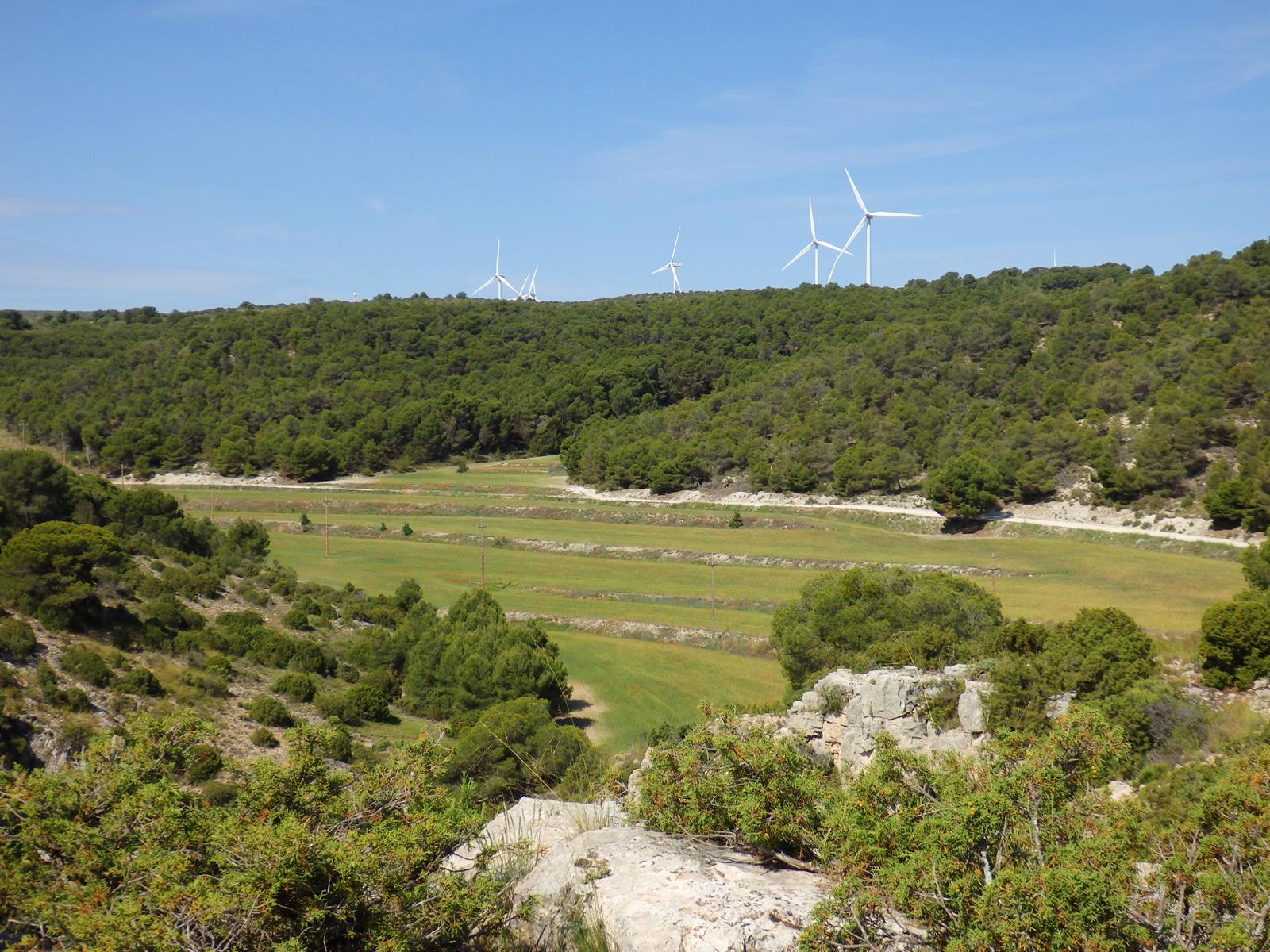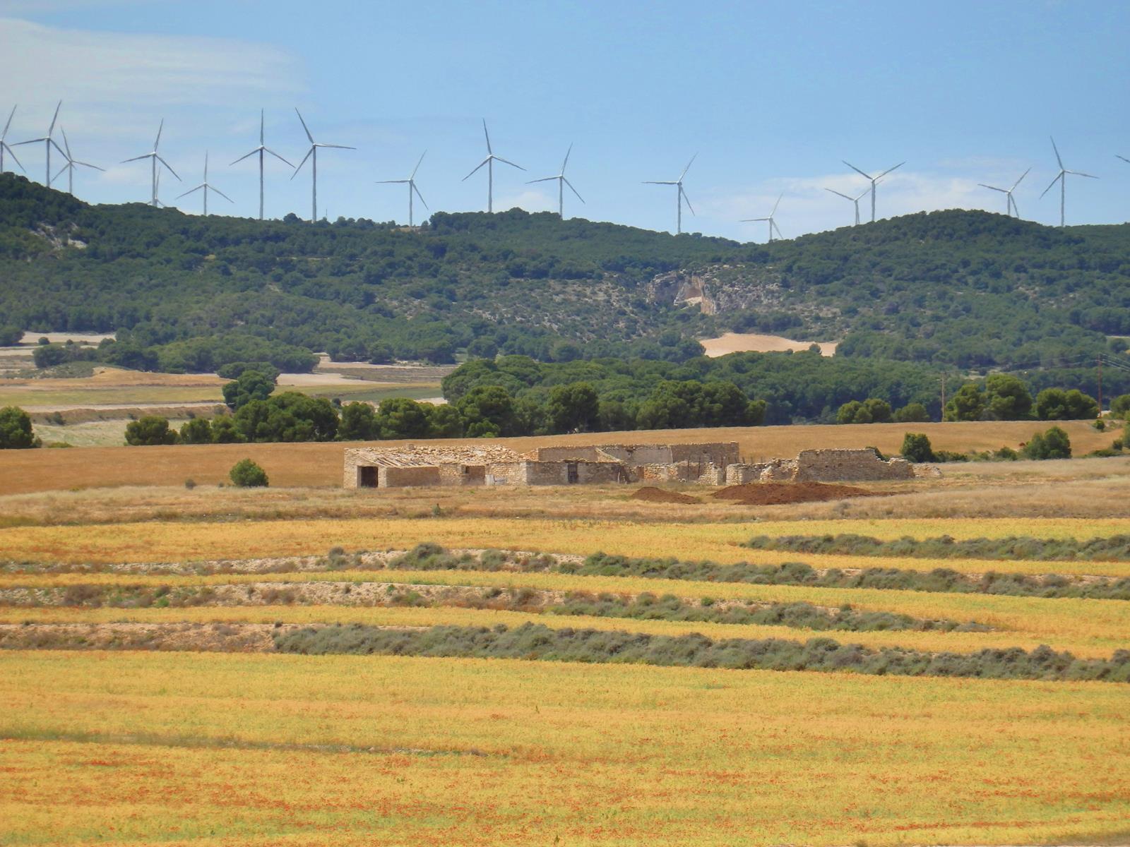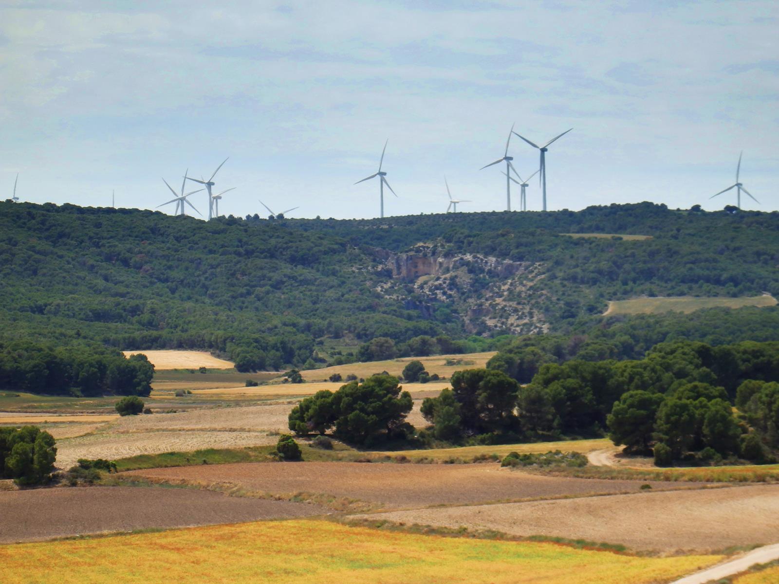Al rato ya empezamos a ver referencias que nos indican que nos estamos acercando a Fuendetodos. Un litonero aislado, los aerogeneradores…