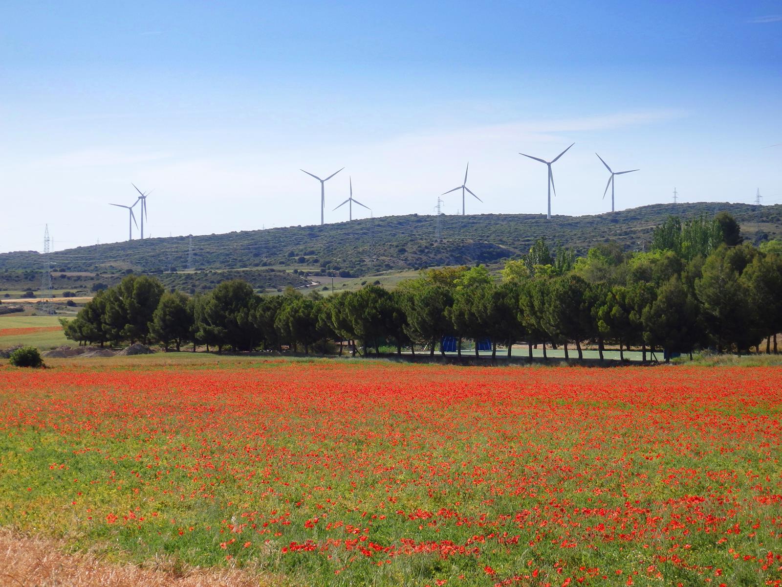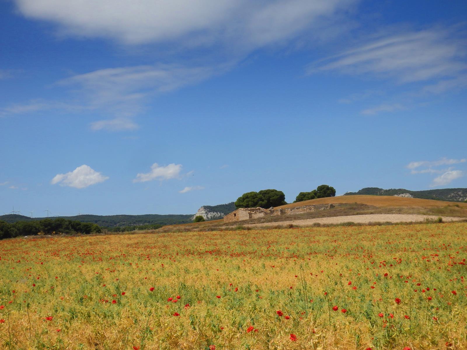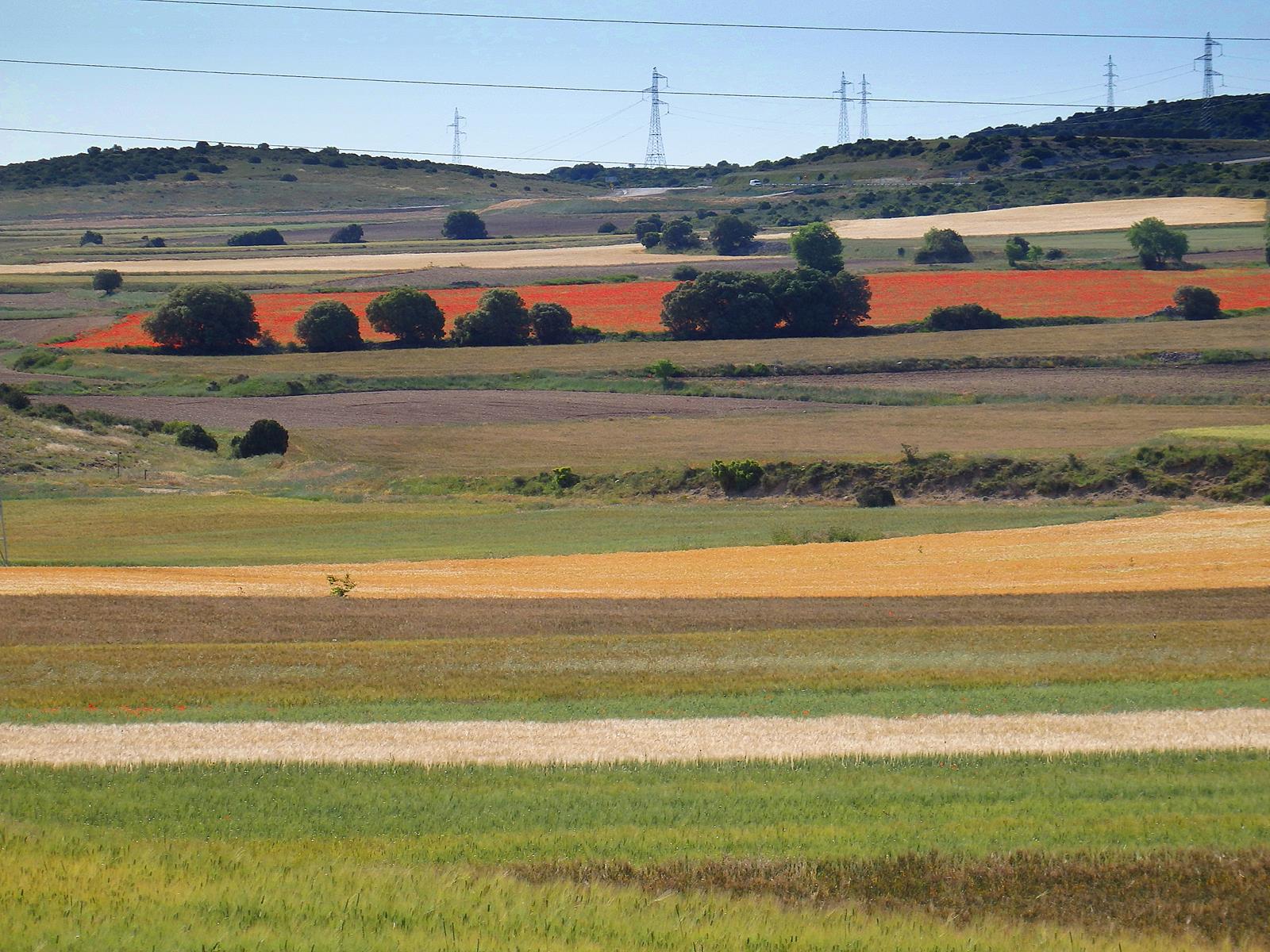 Vamos dejando atrás el pueblo de Fuendetodos pero la vista es de postal. Los campos llenos de amapolas, le dan un color rojo muy bonito. Pienso que Goya en su niñez quizás veía en los campos que rodeaban su casa toda esta paleta de colores que luego despertaron su vocación por la pintura.