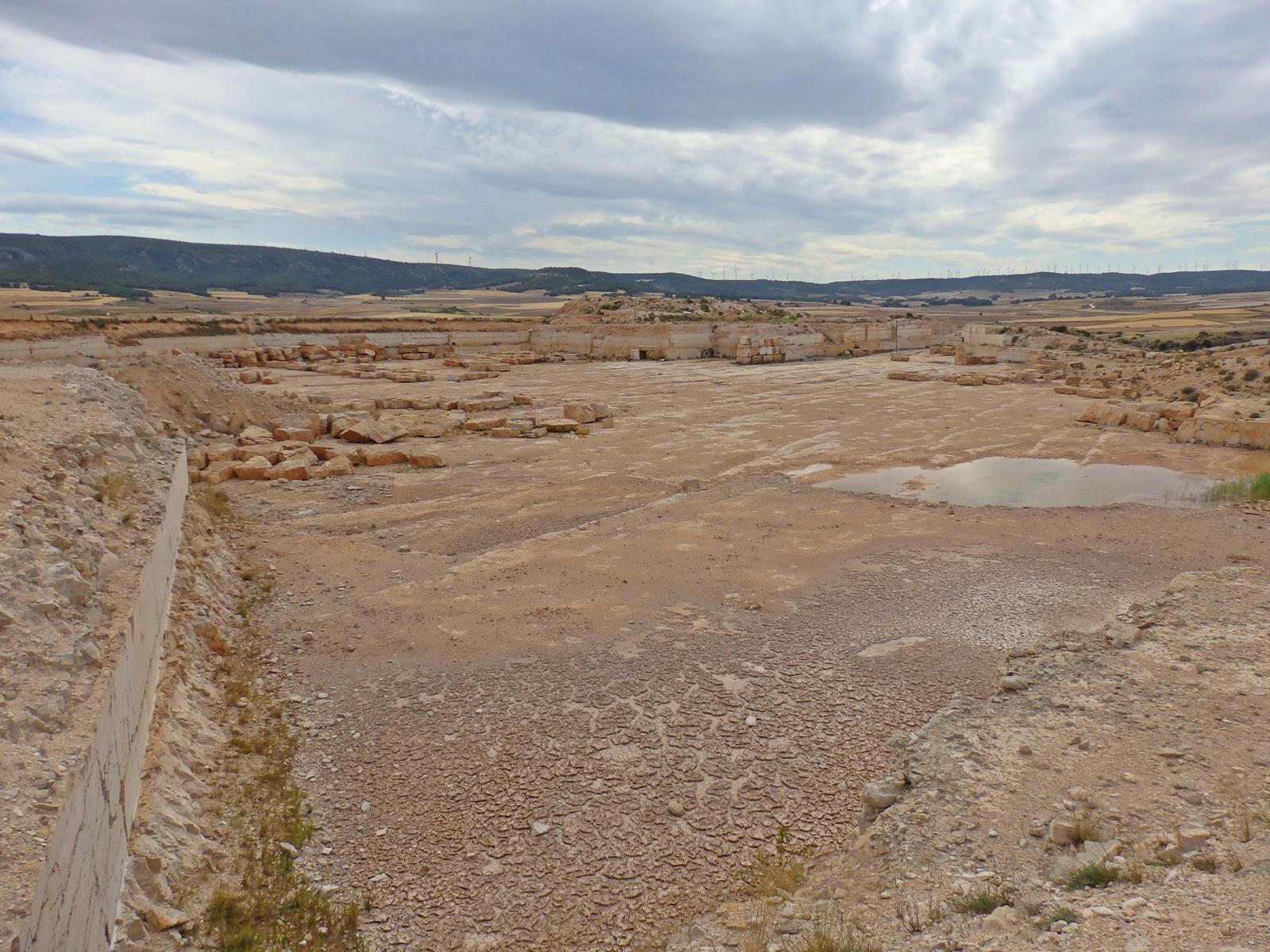El cañón de Zafrané está terminando y ya buscamos la salida por la parte alta. O retrocedemos o miramos de acortar. A la izquierda, junto a los edificios, hay una zona plana y profunda que no es otra cosa que una cantera de mármol que parece ha estado en explotación hasta hace no mucho. ¿Sería hasta el 2012? El calendario que he visto en la garita antes me hace pensar que puede ser que sí. Las paredes están cortadas como si fueran mantequilla en una explotación sistemática.