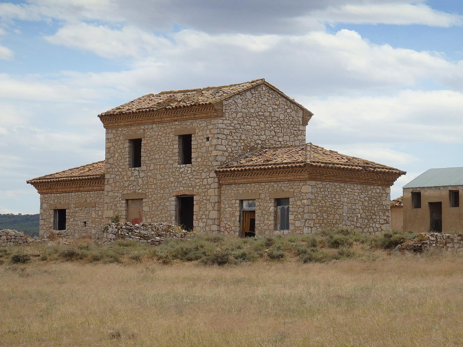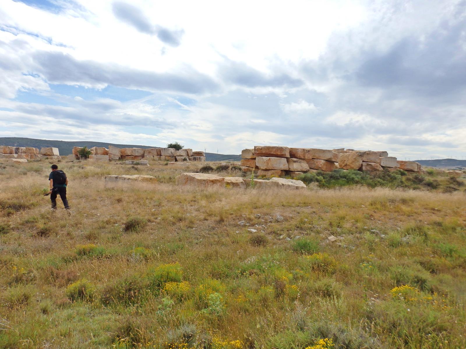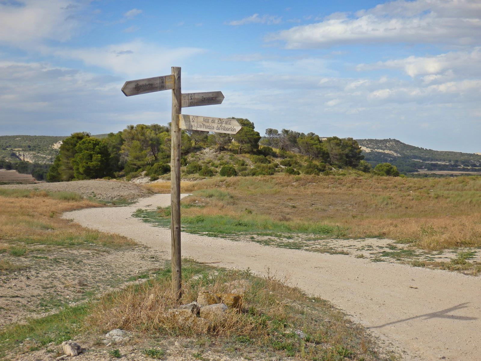 Ya con todo listo, iniciamos la caminata. Salimos de Fuendetodos por un camino de tierra que hay cruzando la carretera, más o menos frente a las escuelas municipales, y que una vez tomado, y avanzando por él, deja a su izquierda un edificio a medio acabar,