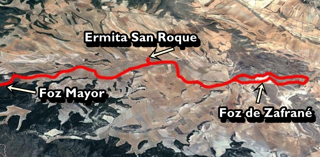 Ya en la pista principal incrementamos el ritmo de la marcha. Y es que casi sin darnos cuenta hemos estado en la foz ¡tres horas y media!. Hemos aprovechado el tiempo como he dicho haciendo fotos y contemplando tranquilamente todo. Pero ahora el objetivo es la Foz de Zafrané y queremos llegar cuanto antes. Además hay que contar con el camino de vuelta.