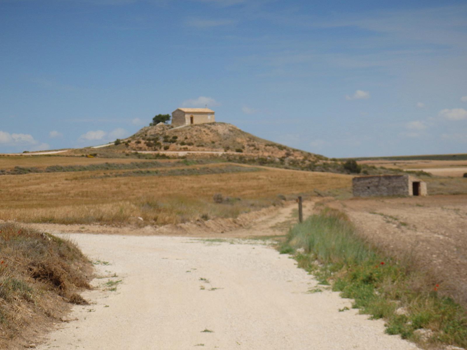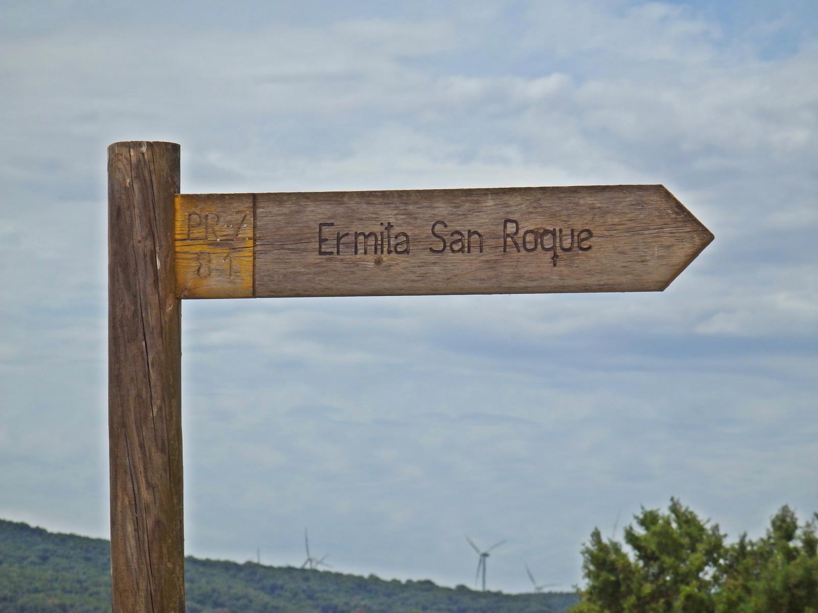 Después de un pequeño parón bajo el árbol, continuamos la marcha. Lo siguiente que vemos en el camino, en lo alto, a mano izquierda según avanzamos es la ermita de San Roque.