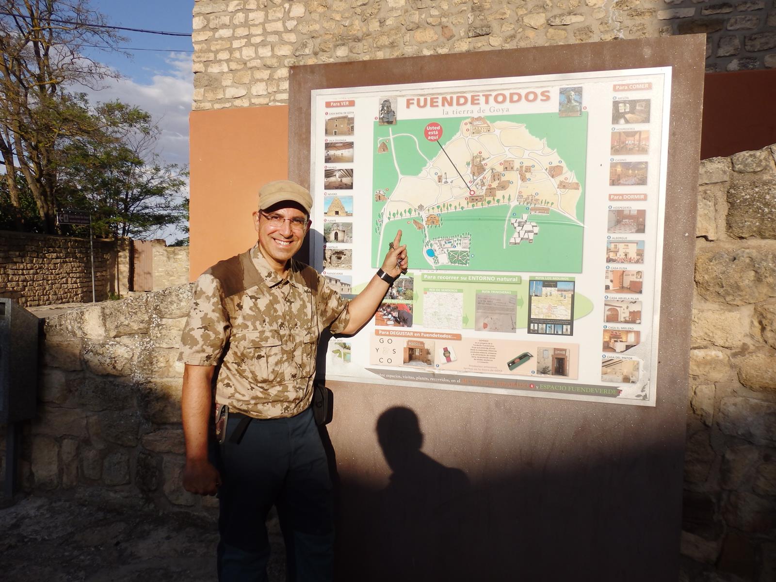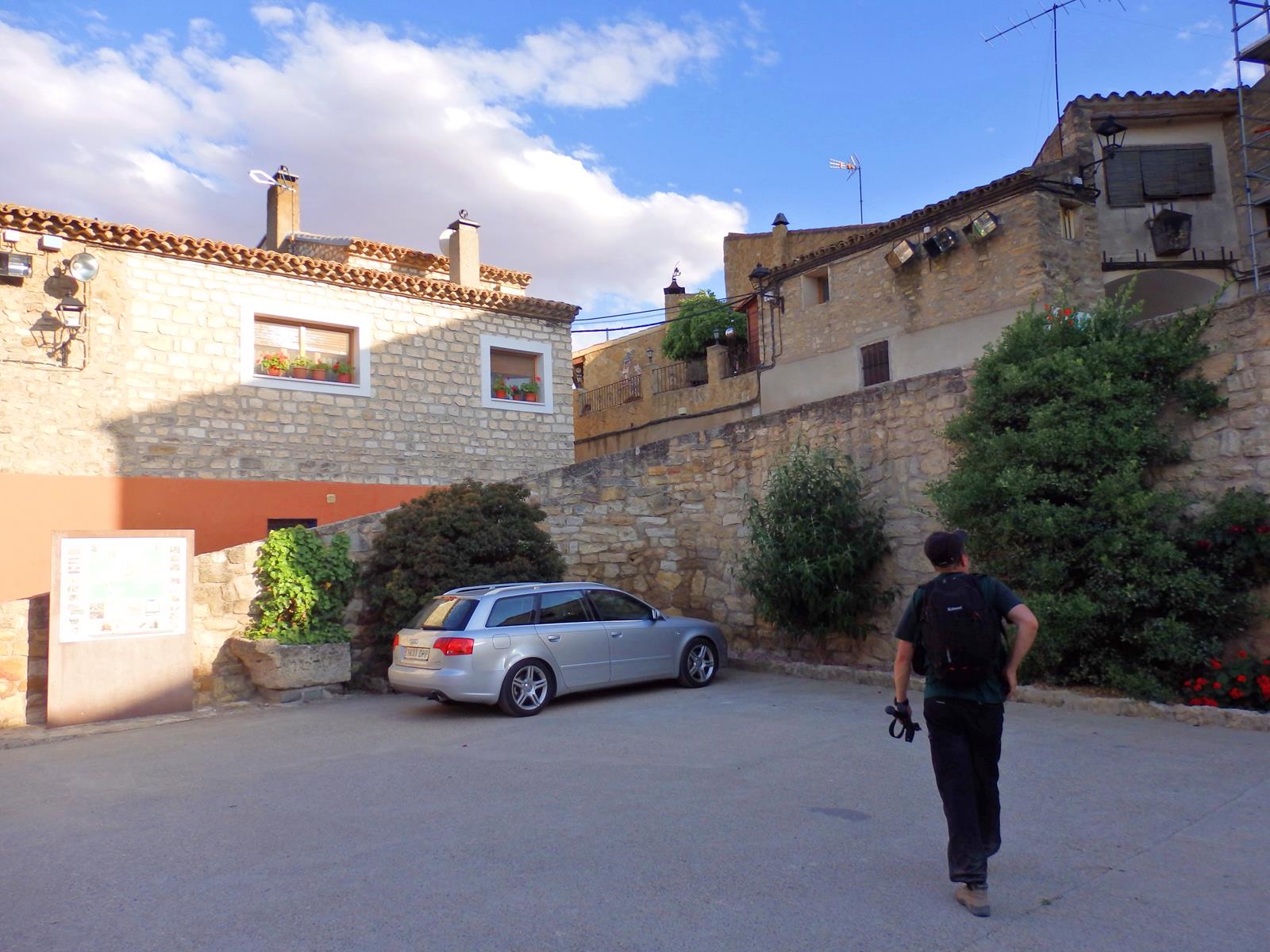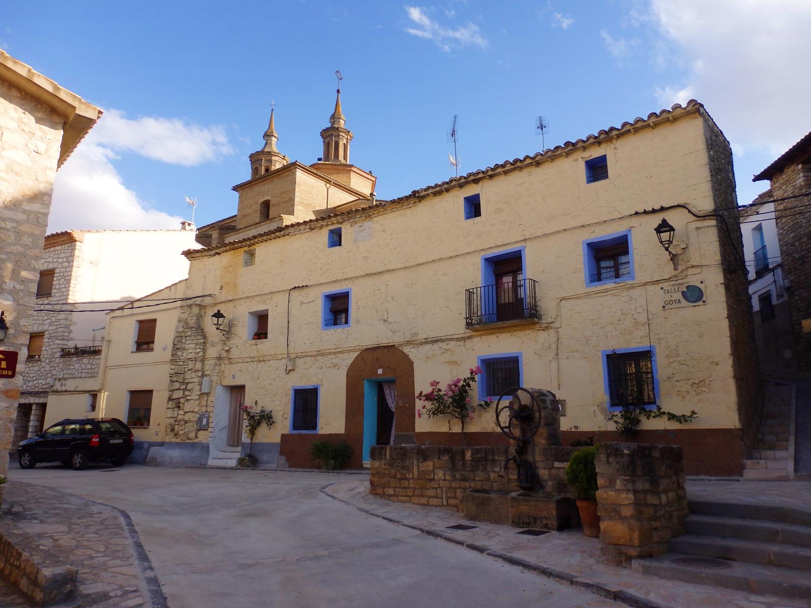 Una vez en Fuendetodos, aparcamos el coche en la plaza donde está la casa natal de Goya. Hay muchos sitios para dejarlo, pero a mí me gusta éste. Además lo dejo pegado a un muro donde seguro va a estar en sombra la mayor parte del día.