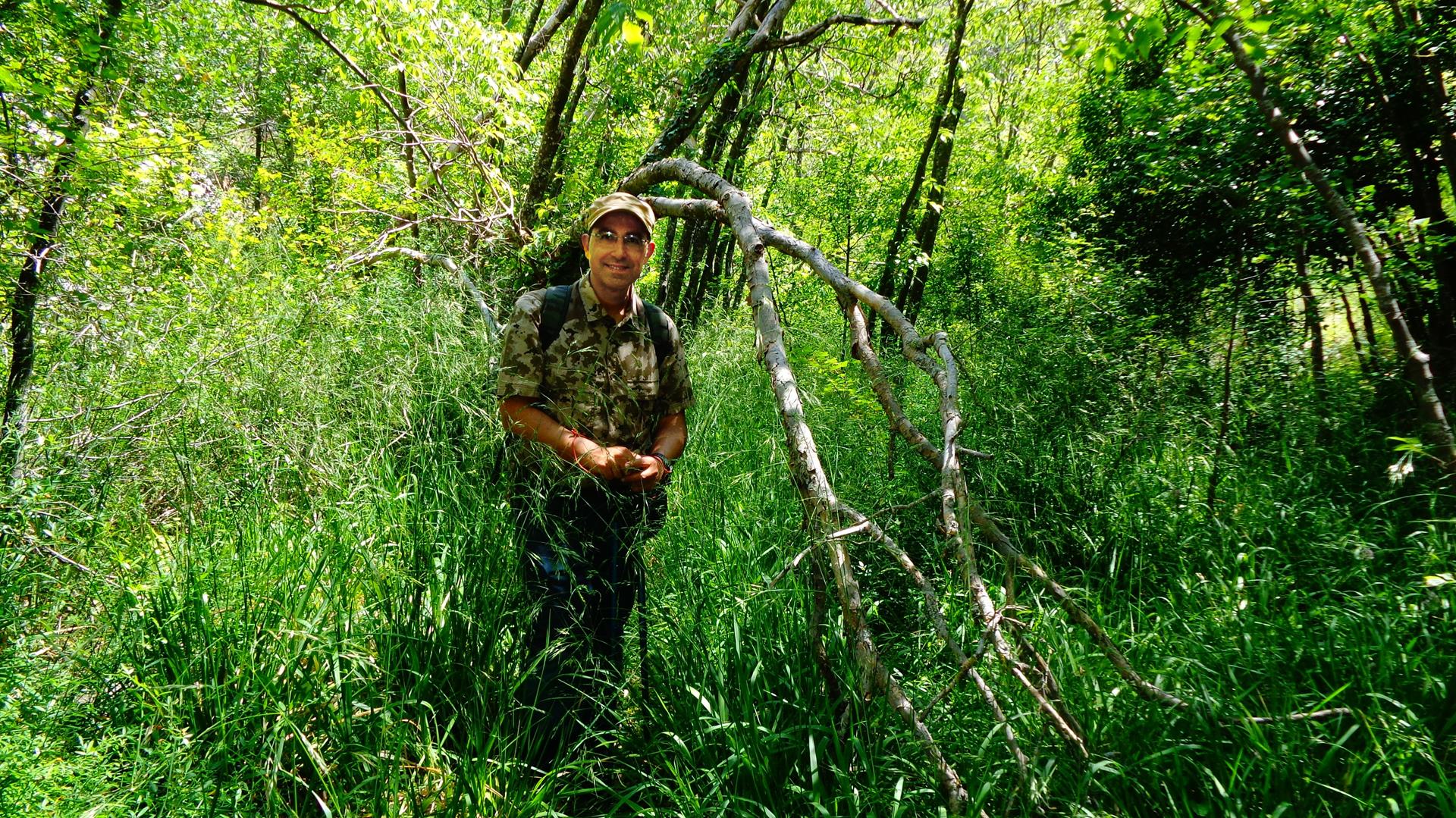 No obstante, de vez en cuando la vegetación se aclara y el camino se hace algo más llevadero. Se ven diferentes especies arbóreas, por las hojas de algunos árboles se puede saber de que tipo son, pero algunas no las distinguimos, otras veces nos encontramos con algún tronco caído y grandes piedras que hay que sortear para continuar avanzando.