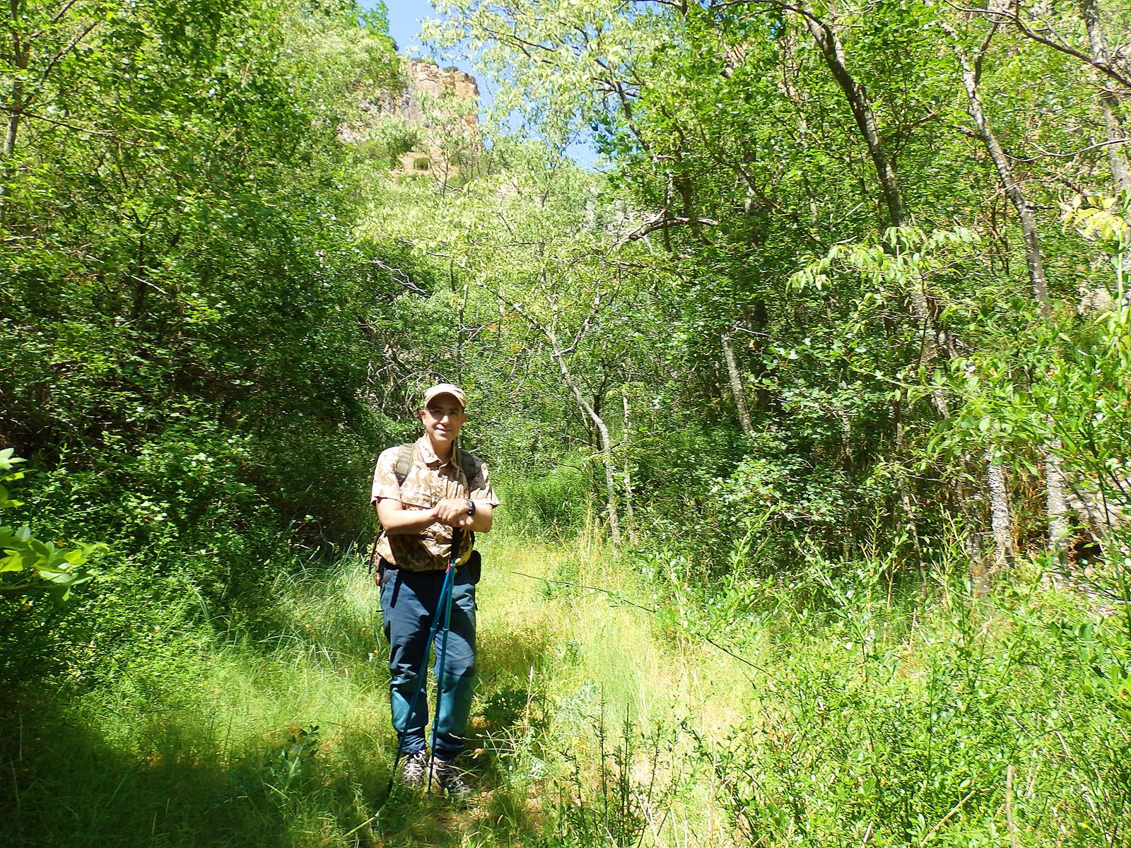 A medida que avanzamos la vegetación sigue haciéndose más espesa. Hay que tener cuidado pues también hay plantas con espinas y zarzas, y es fácil engancharse en ellas. Por eso aún en época de calor, es muy recomendable hacer esta travesía con pantalones largos, y a poder ser no de una tela demasiado fina. Evitaremos molestos pinchazos y arañazos.