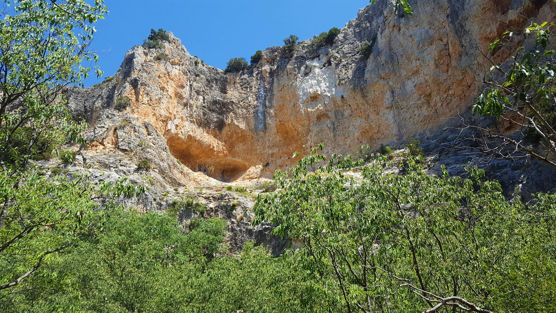 De todas formas, no puedo evitar pensar si será peligroso pasar por la zona, aunque sea a bastante distancia. No se ve a ningún insecto. Seguimos caminando. A ratos la pared está perfectamente horadada y puedes imaginar el agua rebotando en ella con fuerza y erosionando la dura roca caliza hace miles de años.