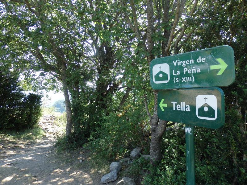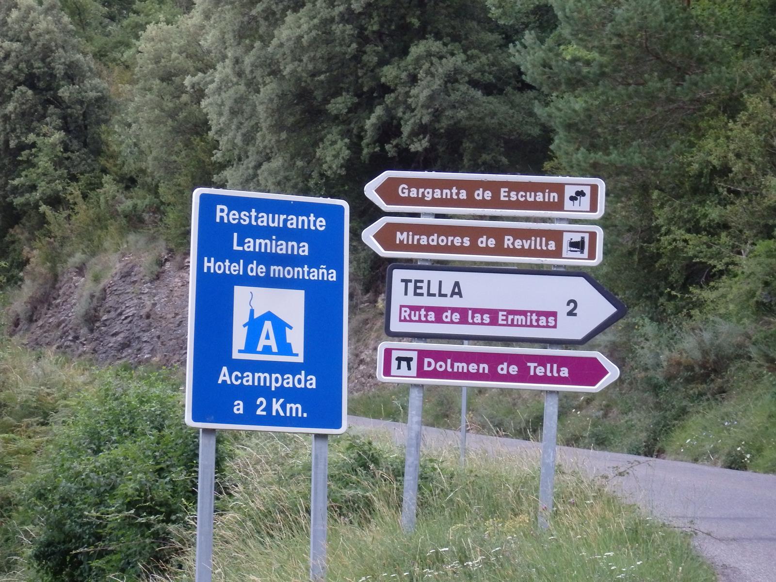 Reanudo la marcha y tras unos cuantos kilómetros en subida constante, llego a una bifurcación, donde un cartel indica que puedes ir hacia los miradores de Revilla o seguir dirección Tella, a 2 km de distancia y también hacia su famoso Dolmen. Este último quiero verlo, pues lleva fama. Vamos allá pues.