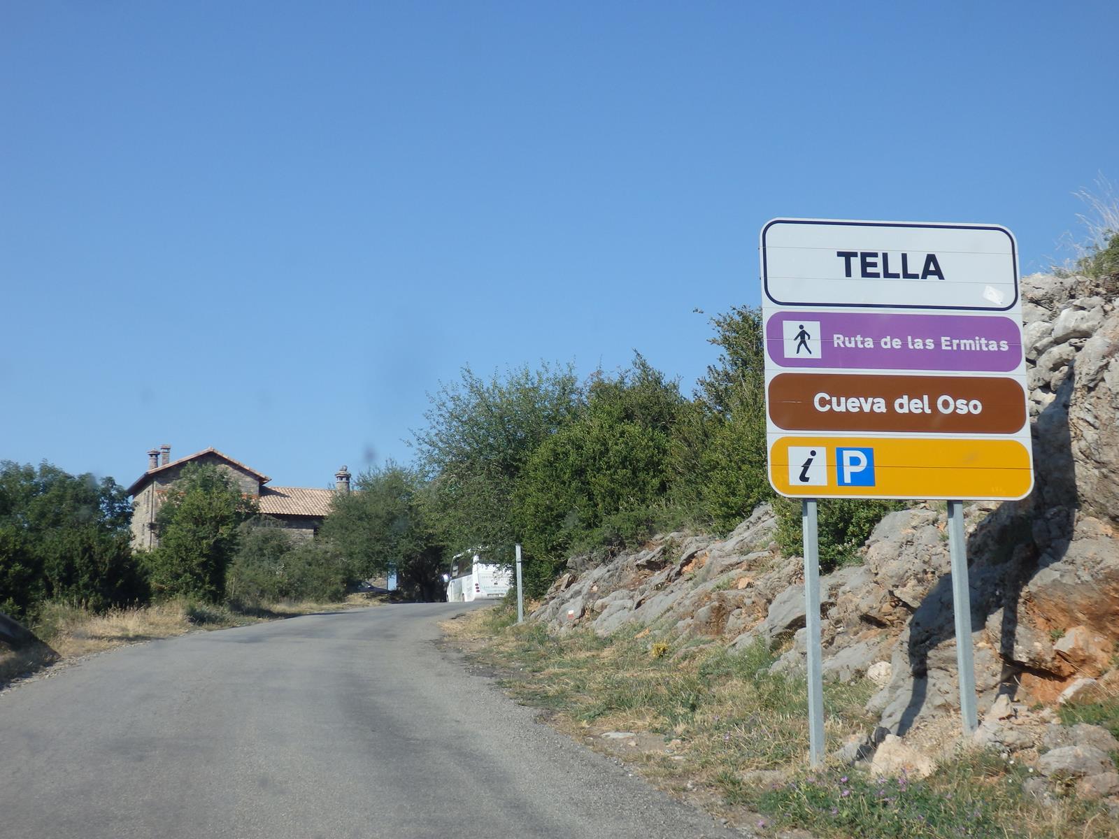 Ya una vez visto todo, y disfrutado de un momento de asueto para relajarme con las vistas, empaparme del entorno, y tomar un poco de agua tranquilo, inicio el camino de vuelta. Retrocedo hasta una bifurcación donde un cartel te da a elegir o ir a Tella o volver por donde he venido. Como hago la ruta circular, voy a Tella. En suave descenso por camino empedrado, me dirijo al pueblo que por cierto tengo a la vista.