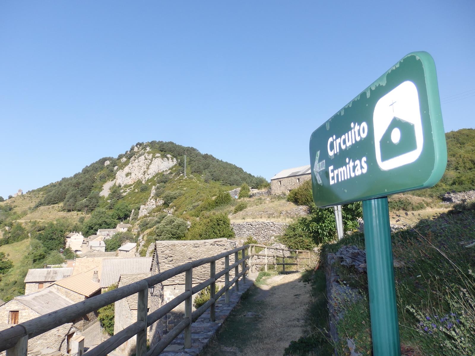 Son las diez menos cuarto de la mañana y el sol ya calienta aunque la temperatura es muy agradable. Busco alguna indicación o cartel para comenzar la ruta de las Ermitas. A la izquierda de la iglesia, casi en paralelo, hay una indicación y un camino. No hay pérdida. Voy a hacer una ruta circular de una hora de duración aproximadamente que comienza y acaba en el pueblo.