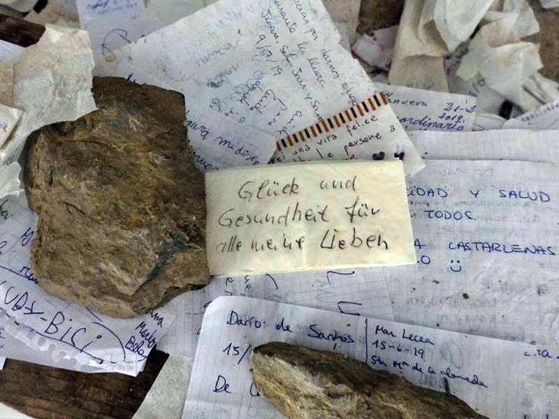 Al entrar, a la izquierda, hay una bancada de piedra bajo un ventanuco por donde entra algo de luz, que está repleta de notas escritas en papeles que ha ido dejando la gente con sus deseos o peticiones. Las hay en diversos idiomas. Hay también unos cuadros con pinturas de Cristo y en un lateral una gran figura de la Virgen María, y a sus pies, unas cuantas velas. Aquí cada cual se expresa según sus creencias. Yo personalmente, dedico un momento a la oración pues la paz y el silencio del lugar invitan a ello. Una atmósfera especial lo envuelve todo. Es un milenio. Es difícil no pensarlo. ¿Cuántas personas habrán pasado por aquí durante todos estos siglos?¿Quiénes serían y cómo fueron sus vidas?.Nunca lo sabremos con certeza. Sólo podemos pensar en generalidades, según la época en la que mentalmente nos situemos.