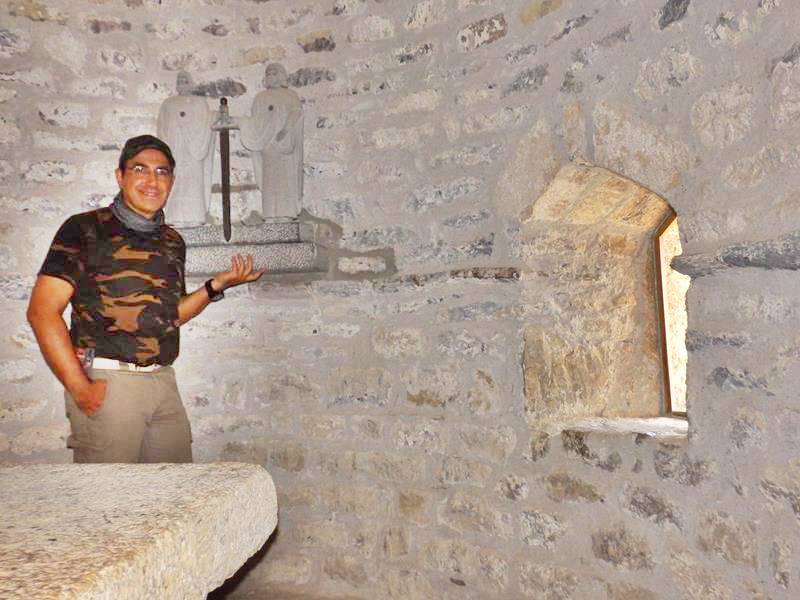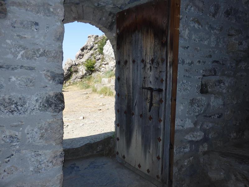 Pues bien, subo por un camino muy marcado. Estoy a 1,402 metros sobre el nivel del mar. Una vez allí me encuentro con el edificio y en un lateral, en el lado sur, una puerta muy antigua, de madera, pequeña, que cierra un arco de medio punto. ¿Estará abierta? Empujo y, sí, se abre. Entro. Estoy teniendo suerte porque no hay turistas por ningún lado. Sólo yo. Que tranquilidad. Una vez dentro me asombra lo reducido de sus dimensiones.