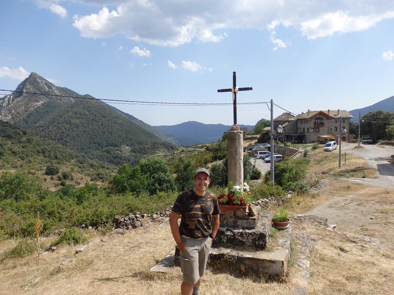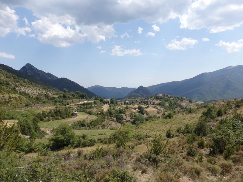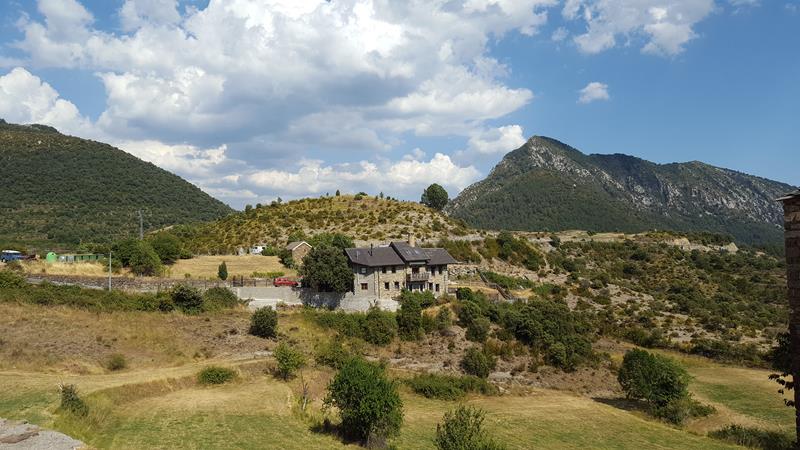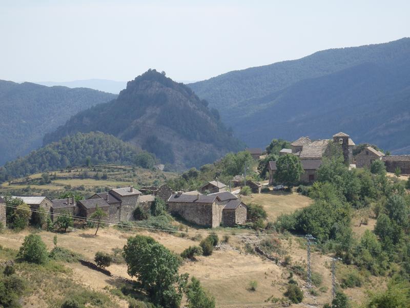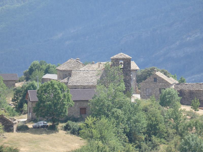 Continúo por la carretera y después de unas cuantas curvas ya veo el pueblo de Vió en la distancia. Es pequeño, prácticamente una aldea, todas las casas son de piedra y destacando, al final del todo, la iglesia.