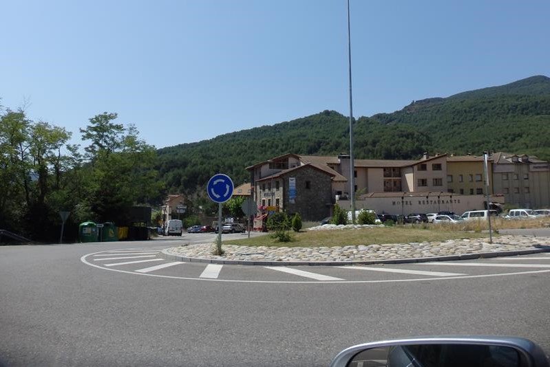 Ya desde Escalona, y en la nacional A-138 me dirijo a L´Ainsa. Voy a repostar. Aquí se me presenta un dilema; o voy por donde he venido, es decir por Barbastro o, también tengo la opción, de volver por Boltaña, de ahí llegar a Fiscal y luego a Sabiñánigo y por el Monrepós ir a Huesca. La carretera de Fiscal a Sabiñánigo es amplia y nueva, tipo autovía. Escojo esta opción. Voy a probar. Giro a la derecha en Ainsa siguiendo las indicaciones y llego a Boltaña que está a 6 km. De aquí a Fiscal tengo 18 km y si voy a Sabiñánigo tendré que recorrer otros 43 km.