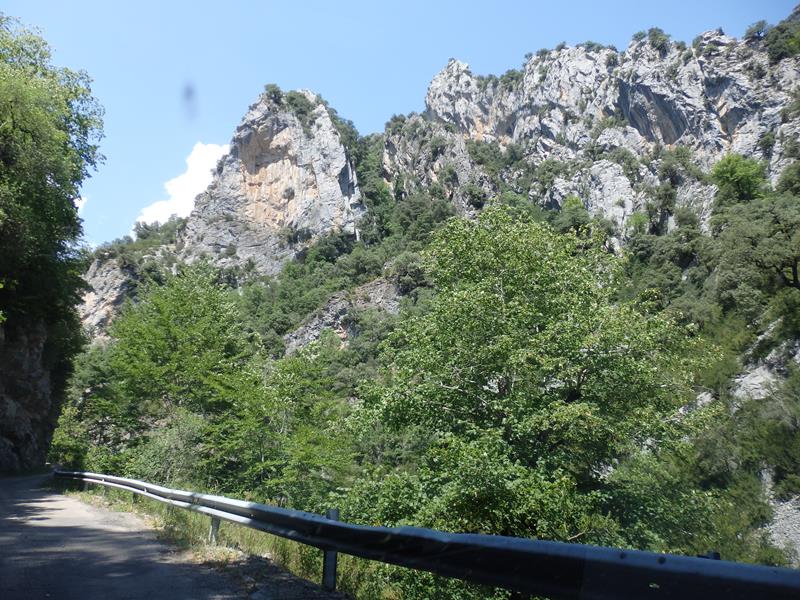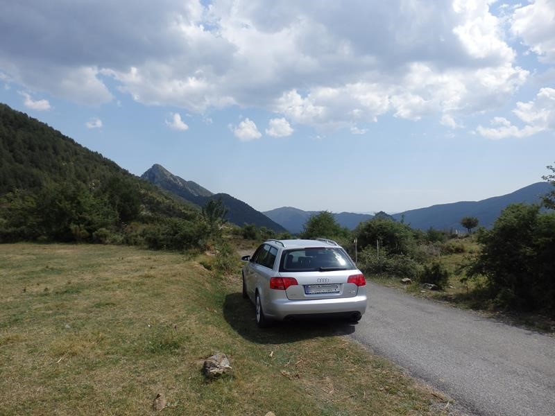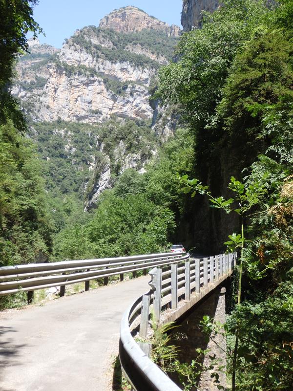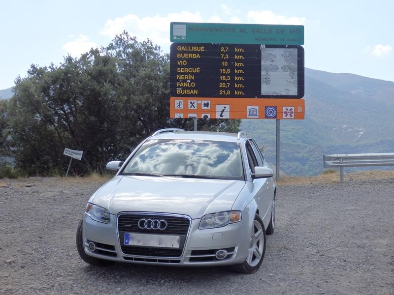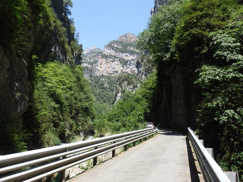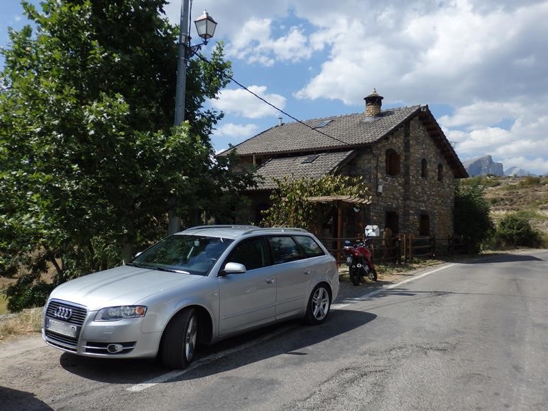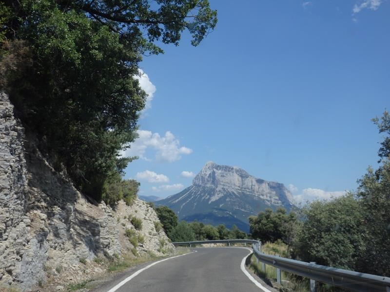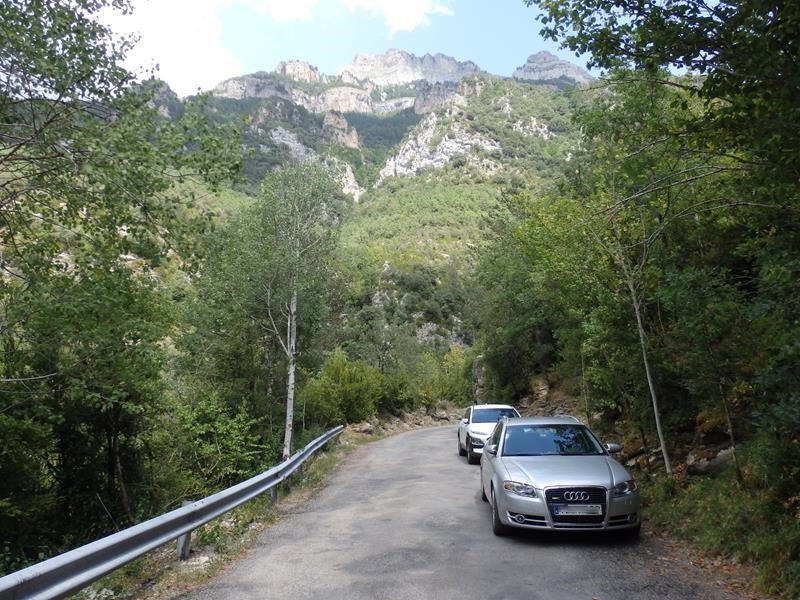Yo sigo disfrutando de la conducción. El coche responde perfectamente a mis exigencias, va como la seda. Los paisajes siguen siendo espectaculares y la visión de Peña Montañesa (2.295m) desde mi posición, también. Pero no os equivoqueis, no voy mirando el paisaje. Hablo de la visión global. Estoy en lo que hago. Un despiste en una curva y me voy al precipicio. Los cinco sentidos siempre al volante y la velocidad adecuada. Si hago alguna foto es parado, y después de comprobar concienzudamente que puedo hacerlo con total seguridad, nunca en marcha.