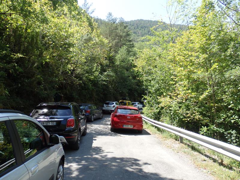 Tras algunos kilómetros más por esta fantástica carretera, llego a mi destino. Y lo sé porque no soy el único. El lateral de la misma empieza a aparecer llena de coches aparcados. Veo muchos. Ahora entiendo por qué no pasaba nadie por la carretera. Ya estaban todos aquí, Veo un hueco, y como no sé como estará la cosa más adelante no me lo pienso y aparco.