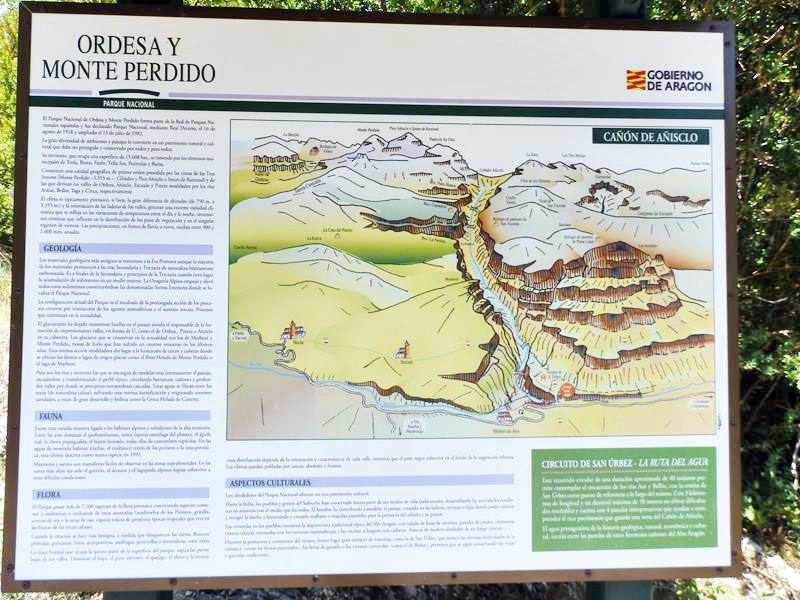 Hay muchas posibilidades. Me gustaría hacer en otra ocasión la Ripareta (3 horas sólo ir). Lo más lejos que se puede llegar es al Collado de Añisclo (7 horas de ida). Son las dos de la tarde y no me va a dar tiempo a hacer ninguna de esas rutas, que pasen de dos horas de duración entre ir y volver, y más contando con que me entretengo bastante en disfrutar del entorno y hacer fotos. Tengo un buen trayecto de vuelta a Zaragoza y al día siguiente es de trabajo. Pero sí puedo hacer el circuito de la Ermita de San Úrbez. A por ello.