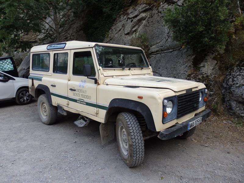 Al fin, llego al aparcamiento de San Úrbez. Pero no he llegado a mi coche. Hay un Land Rover Santana del Parque Nacional de Ordesa y un gran cartel donde explica el lugar donde nos encontramos y los pueblos de alrededor. También hay muchos más coches.