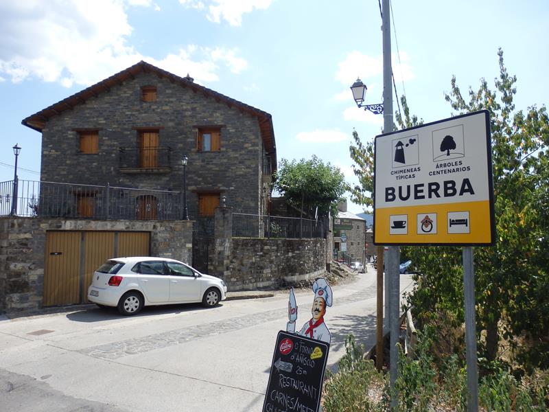 El siguiente pueblo es Buerba, a 1.143 metros de altitud. Pertenece al municipio de Fanlo. Llego allí y aparco a la entrada. Lo primero que veo es una bonita y pequeña casa rural de habitaciones. Me dispongo a dar una vuelta caminando. Este pueblo se ve mucho más cuidado y moderno, pero ha conservado todo el sabor de la montaña. Es bonito.