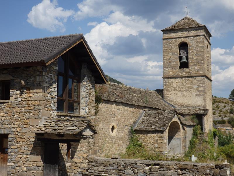 Voy a verla. El camino sigue siendo de tierra, ni siquiera está asfaltado. Bueno es que la mitad del pueblo como ya he dicho es pista de tierra. Accedo a la puerta, empujo. La iglesia está cerrada. Una chica que está por allí me pregunta si he venido de propio a verla. Me dice que hay gente que viene a este pueblo sólo por esto, porque tiene su importancia a nivel artístico. Le digo que no, que vengo de Añisclo y que voy de paso pero que sí quería aprovechar para ver la iglesia.