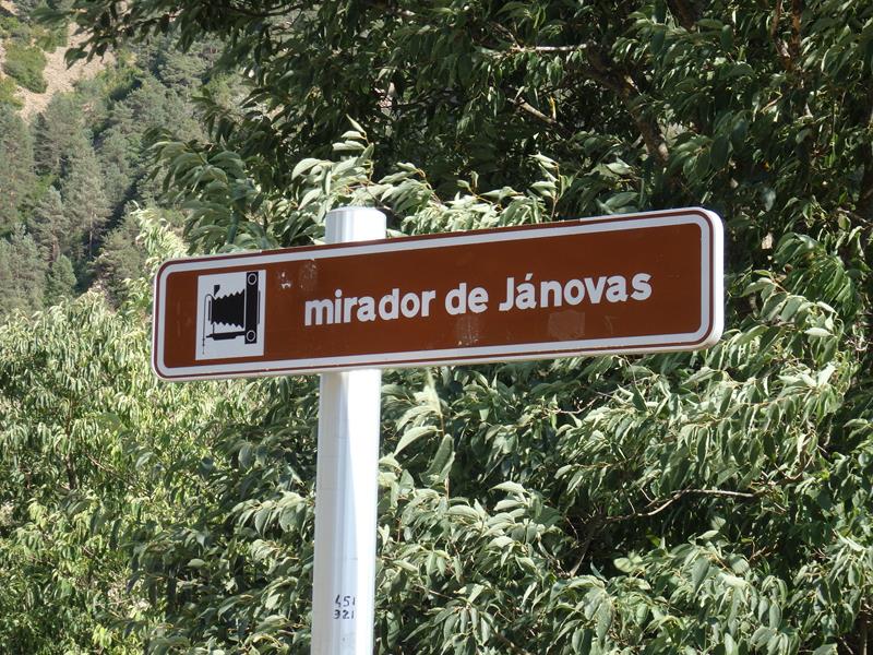 Paso algunos túneles y llego a una zona donde se anuncia un mirador, el de Jánovas, desde donde puede verse este pueblo que fue expropiado a la fuerza para realizar un embalse que nunca se construyó.