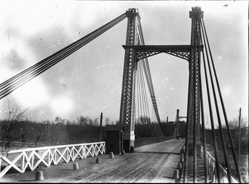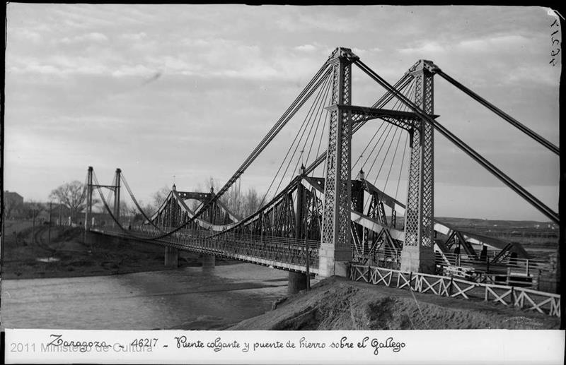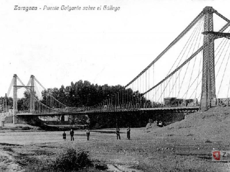 El puente de Santa Isabel sobre el Gállego se convirtió en 1.844, en el tercer puente colgante de cables de acero de España y en uno de los de mayor luz -distancia entre los apoyos- con 163 m y 7,62 m de anchura.