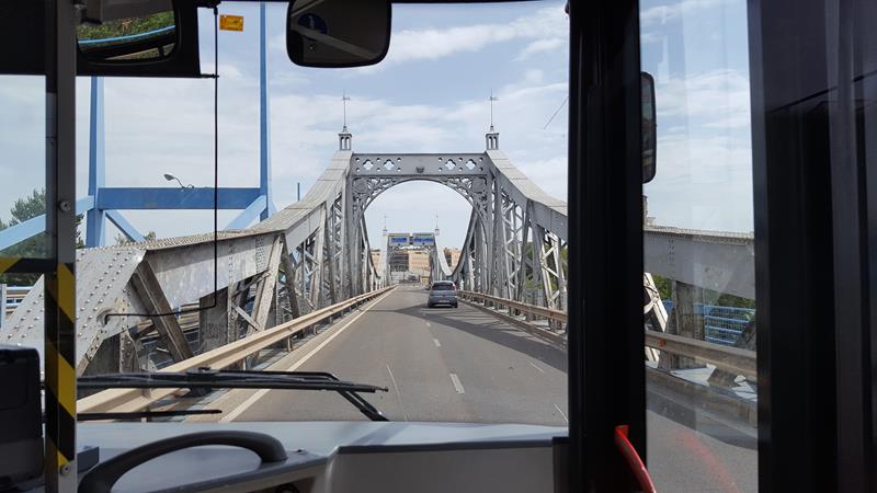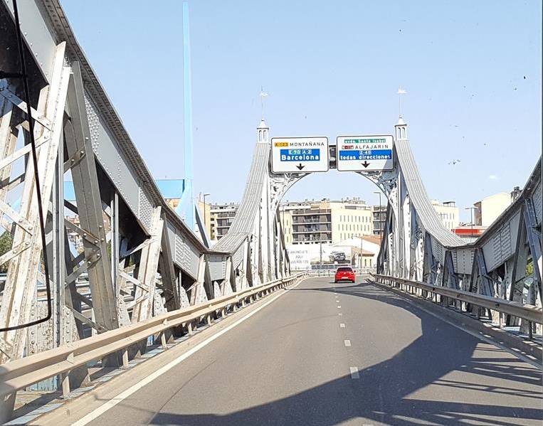 Son las 16:45 horas de este caluroso jueves del mes de agosto, y ya estoy montado en el bus .Sobre las 17 horas estoy cruzando el puente sobre el río Gállego. Os voy a hablar brevemente de este puente.