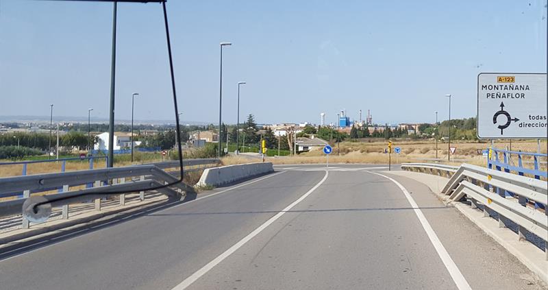 Después, un cartel bien grande a la derecha, y antes de entrar en una rotonda, nos indica que debemos continuar hacia Montañana-Peñaflor.