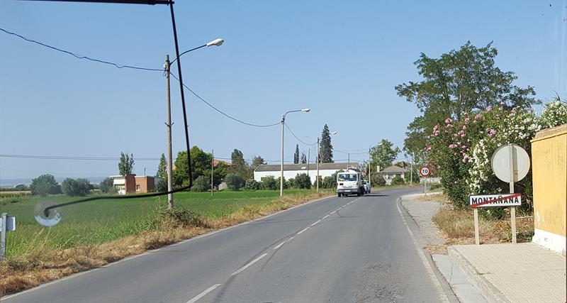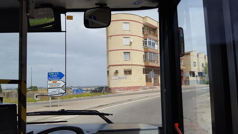 Poco a poco ya noto que estoy adentrándome de lleno en la zona rural. Los campos y las huertas comienzan a aparecer a ambos lados de las ventanas del bus.Salgo de Montañana y continúo hacia mi destino. Son las 17:11 horas.