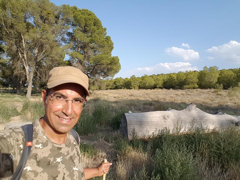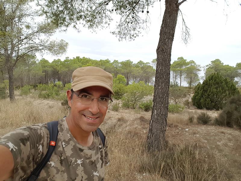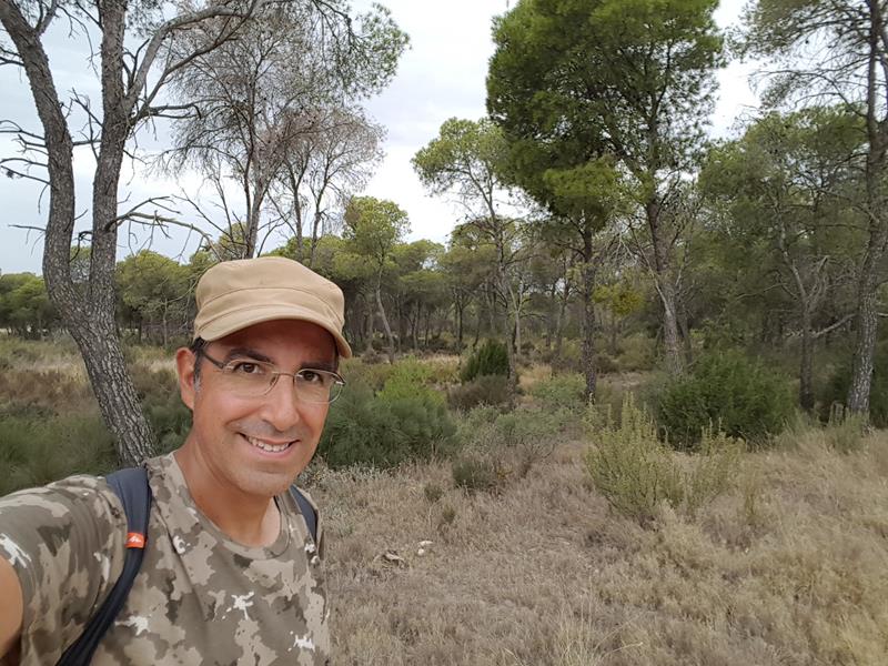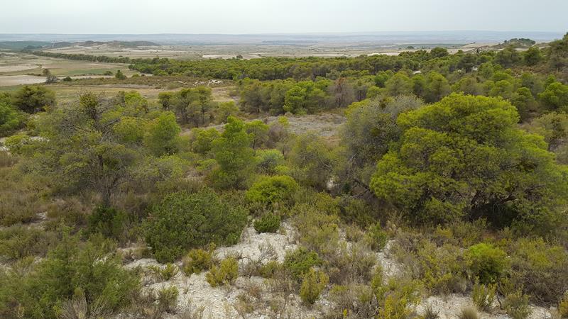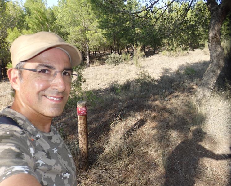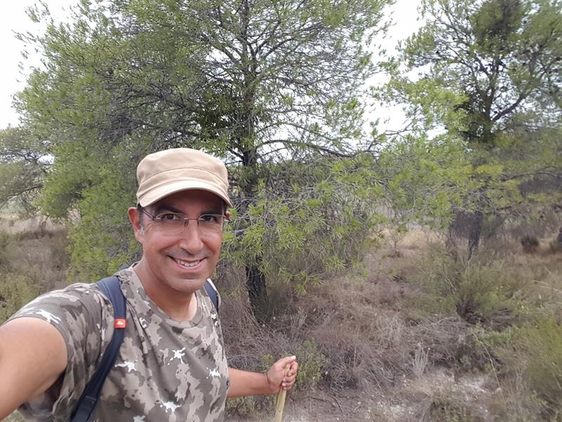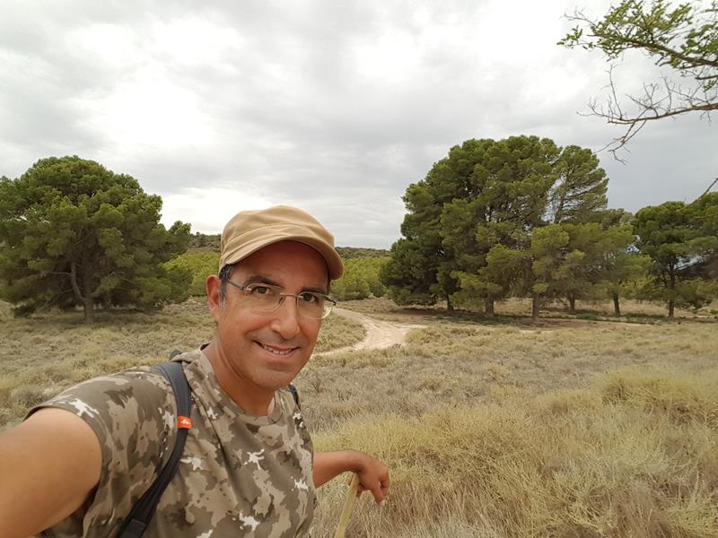 Mientras subo la loma,vuelvo a encontrarme con el matorral propio de la zona esteparia, con abundante tomillo, que conozco bien. Sin embargo, el objetivo de otear el horizonte y ver si tengo al alcance el vedado, da sus frutos. Me doy cuenta de que todavía no he llegado ni a lo que se considera propiamente la zona boscosa, aunque sí que veo extensas masas de pinar junto a los «vales».