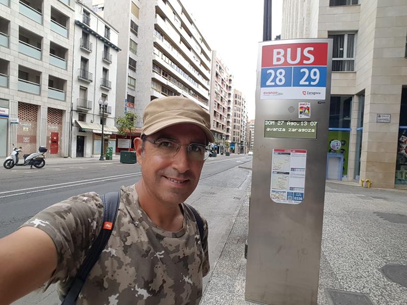 La línea que debo tomar es la 28. Se coge en el Coso nº 66. No tengo que volver a pagar el autobús. Con el billete que saqué para el tranvía con mi tarjeta de bus hago un transbordo, siempre que sea antes de una hora. Coste total del viaje de ida: 0,75 céntimos. La línea es la que va a Peñaflor- Montañana. La frecuencia es cada 30 minutos, que és lo que se tarda en llegar allí aproximadamente.