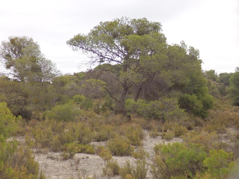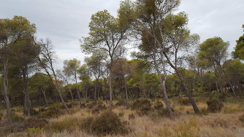 También existe un rico sotobosque con especies como la efedra (Ephedra sp.), el espino negro (Rhamnus lycioides), las olivillas(Phillyrea angustifolia) el lentisco (Pistacealentiscus),la gayuba (Arctostaphylos uva-ursi) y las sosas salobres (Atriplexhalimus).