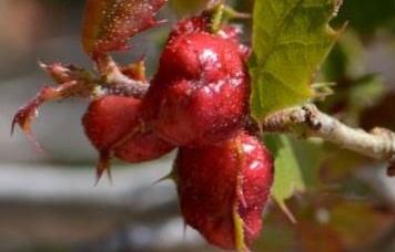 Y una última cosa que os cuento sobre la coscoja y que se remonta a los tiempos de los romanos:antiguamente tuvo importancia el uso de las agallas -es esa protuberancia que se ve roja en la foto- provocadas en las hojas por el hemíptero Coccus ilicis (un tipo de cochinilla), obteniendo un colorante rojo, de él deriva el color carmesí que servía para teñir la púrpura más exquisita, que usaban los miembros del Senado.