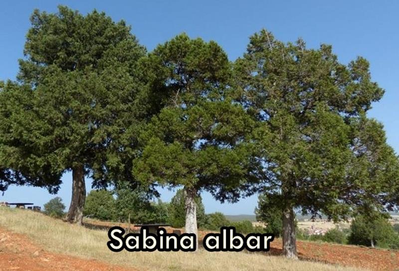 Otro árbol que se encuentra en esta zona es la sabina albar (Juniperus thurifera), la sabina negral (Juniperus phoenicea), la coscoja (Quercus coccifera) y el enebro(Juniperus oxycedrus), y alguna encina o carrasca chaparra(Quercusilex).