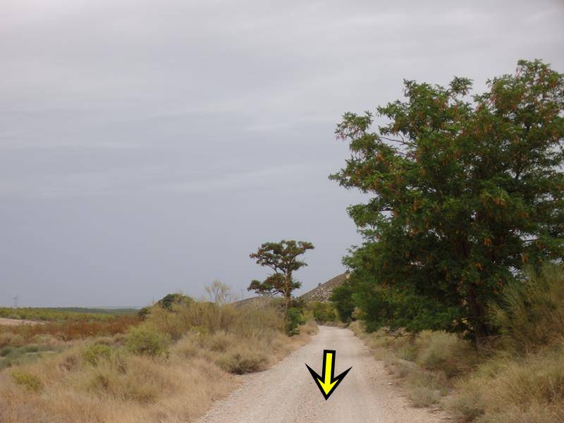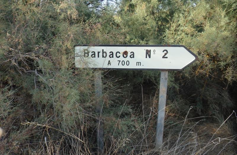 Sobre una loma que queda a mano derecha, veo una torre de alta tensión. Tomo nota. Una referencia más para la vuelta. Yo siempre voy atento a estas cosas, por si necesito orientarme más tarde. Una señal a la izquierda del camino, me indica que estoy a 700 m de la barbacoa número dos.