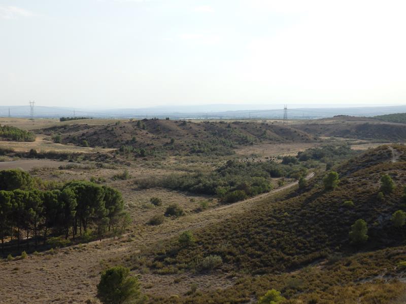 A medida que me voy alejando la torre queda más y más lejos. Al fondo, en el horizonte, una mancha verde, casi inapreciable, me indica la localización de una urbanización de chalets que se llama Las Lomas del Gállego.